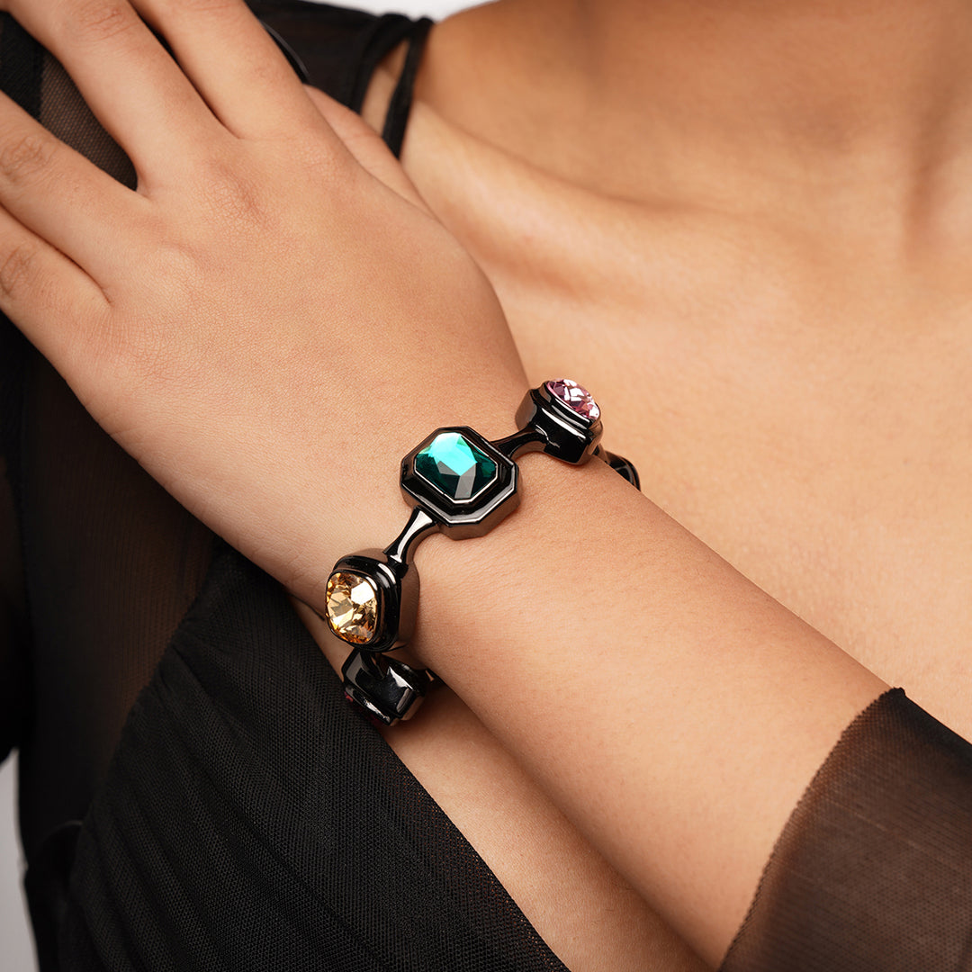 Easy to pull off with practically any outfit, this signature black-plated bangle is tipped by high-shine crystals and beautiful enamel work.