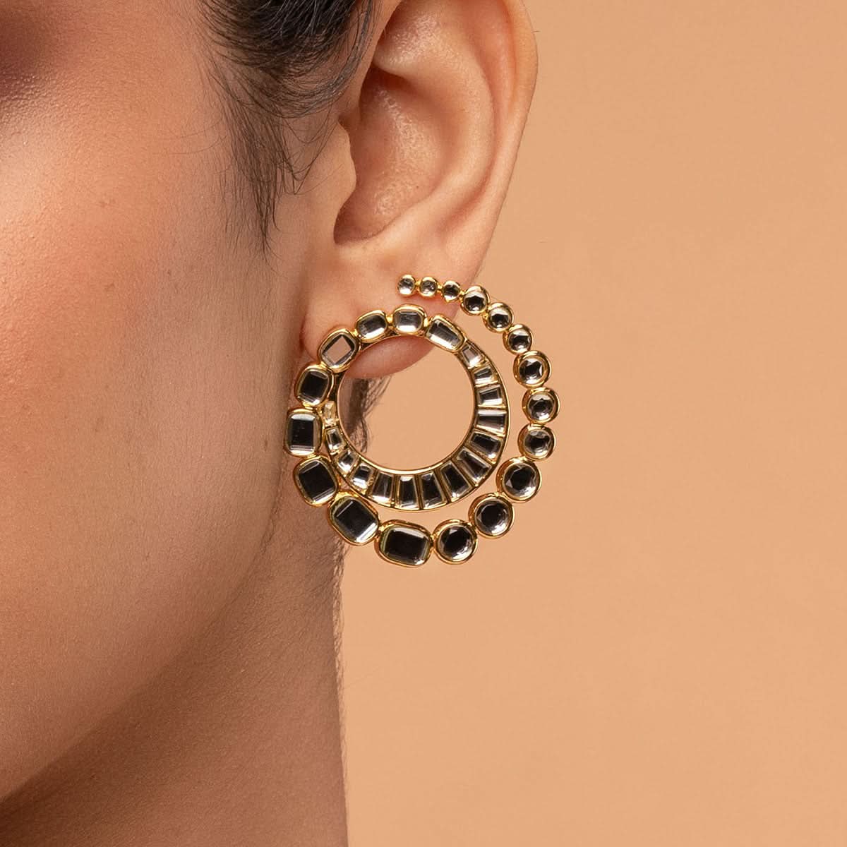 Isharya is known for blending modern designs with traditional craftsmanship, producing some of the most innovative designs in statement jewellery. We have a strong design team that researches the latest trends and designs standout jewels using unique materials or techniques. For example, our more iconic jewels feature hand-cut mirrors resembling polki work. Our statement necklaces are truly one-of-a-kind and have been spotted on celebrities like Priyanka Chopra Jonas, Sara Ali Khan, Sonakshi Sinha, Malaika Arora, Tabu and more. Our statement earrings are also revered by the fashion crowd. The biggest reason why our jewels stand out is that they’re crafted from brass and plated with 18k gold. This means that our demi-fine jewellery is hypoallergenic and skin-friendly!