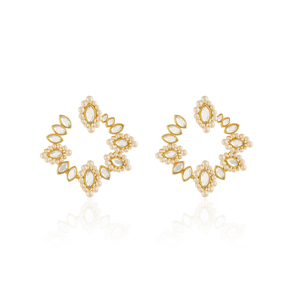 Demi Goddess Irregular Mirror and Pearl Stud Earrings