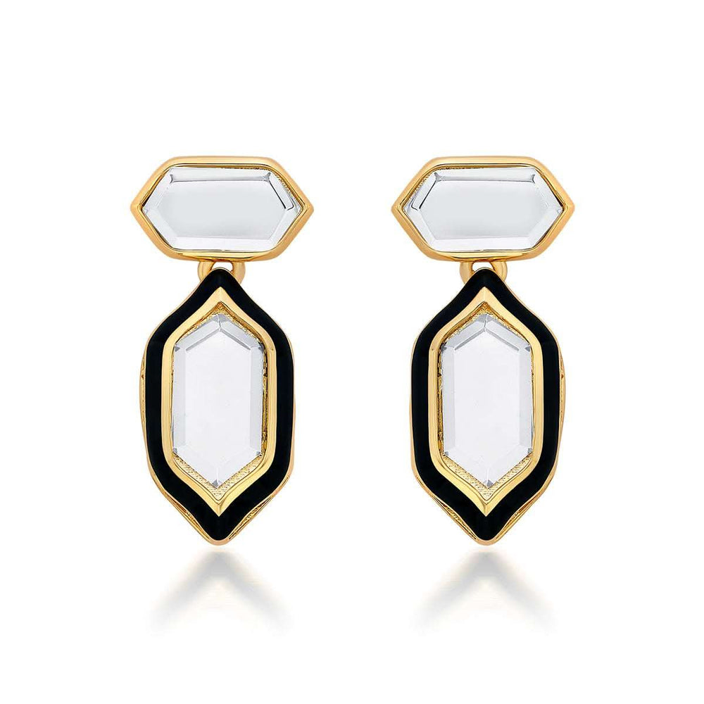 Shiza Mirror & Hydro Emerald Geometric Earrings