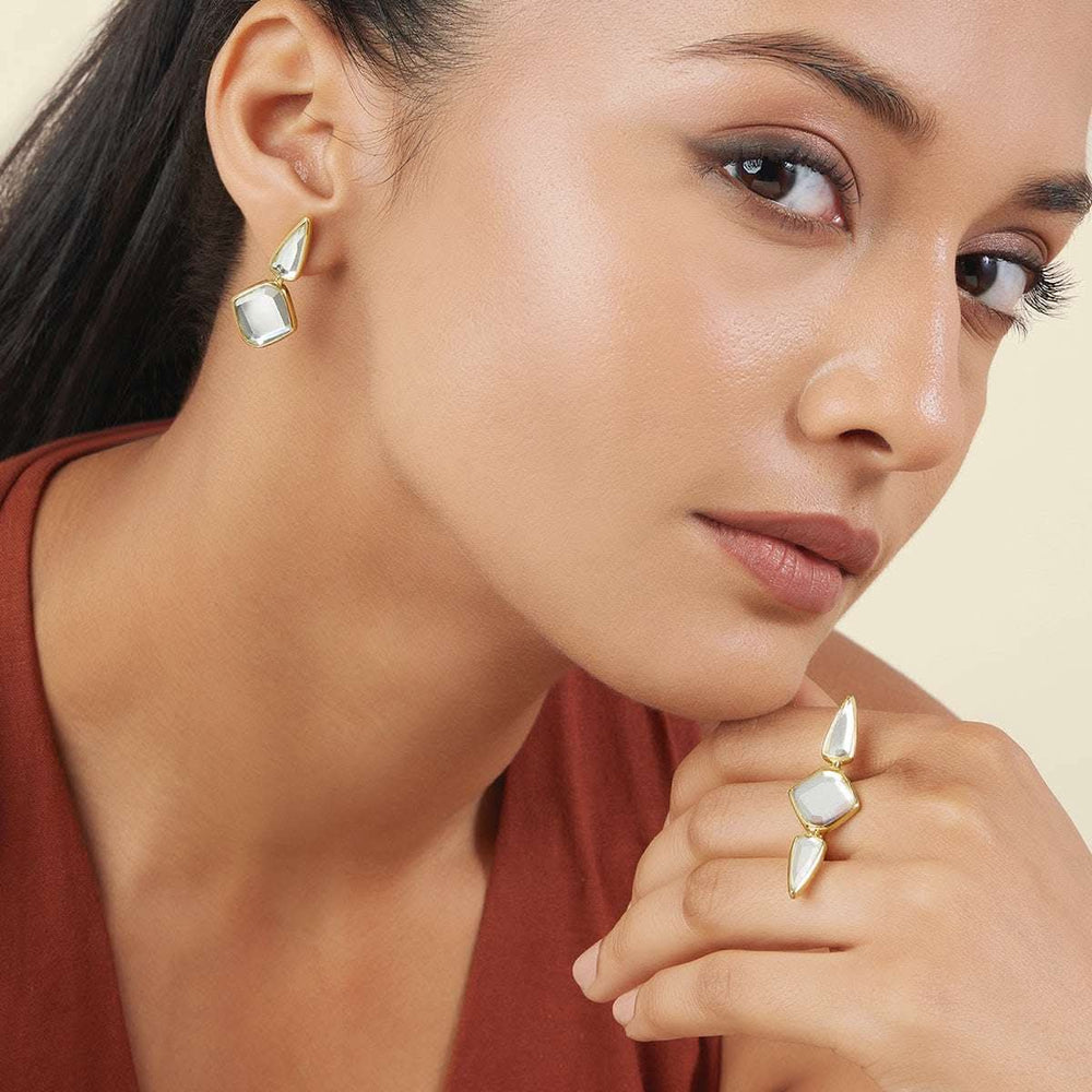 Additionally, promise rings also make a big chunk of Valentines jewellery. These promise rings are nothing but expensive rings that you can give your girlfriend, promising to propose in the future. We have plenty of rings in this category. Choose from statement pieces that will boldly declare your love for her. Our collection of earrings for Valentines Day is also worth a look. They're super cute, and we are sure your loved one will love them. In true Isharya style, they are crafted in brass and plated with 18k gold, ensuring durability and long-lasting shine. If you're trying to woe your loved one this year, shop our special edit of valentines jewelry for her.