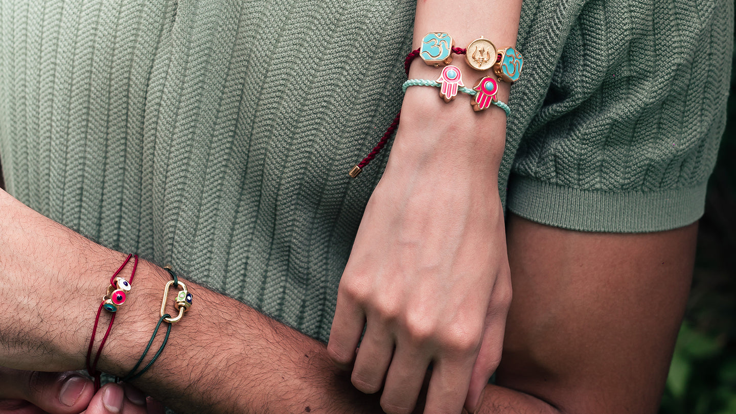 CUSTOMISE A POWERFUL BRACELET IN 4 COLOURWAYS AND 4 WHEEL CHARMS, OR SELECT FROM OUR ELEGANT PRESET MANTRA BRACELETS.