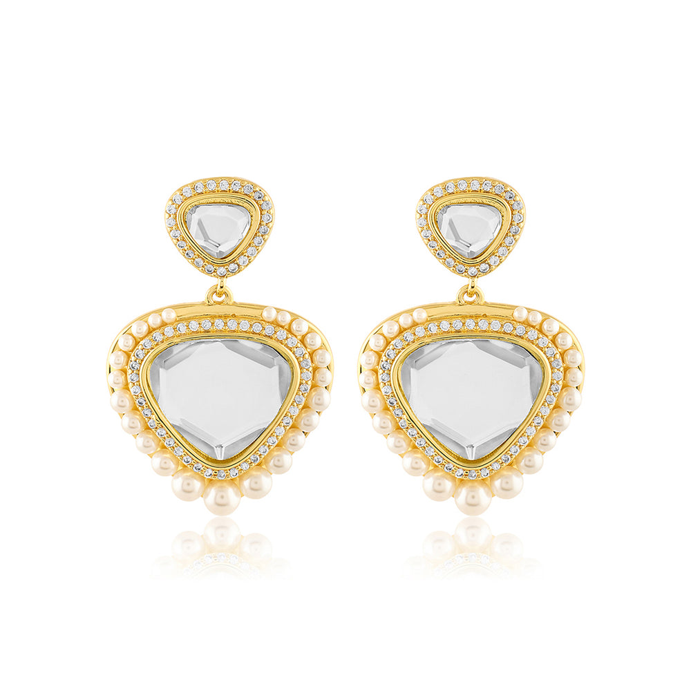 Ayaana Mirror and Pearl Needle-Thread Earrings