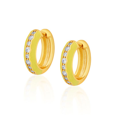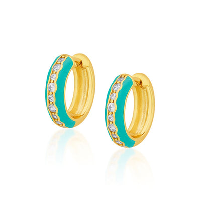Indulge in the elegance of dainty enamelled minimal pieces, featuring vibrant candy colors and complemented by chunky charms, link chains, and hoop earring for on the work days.