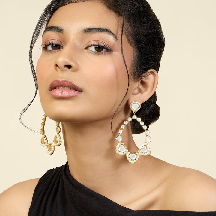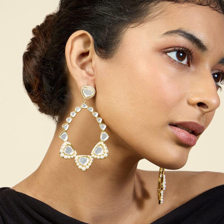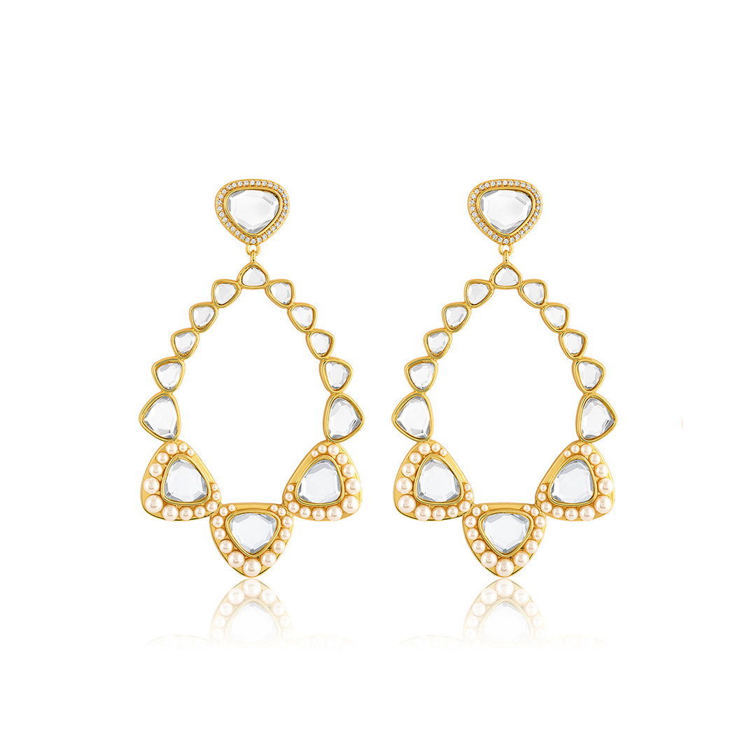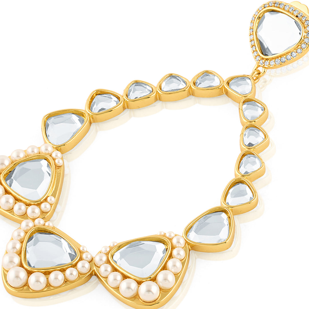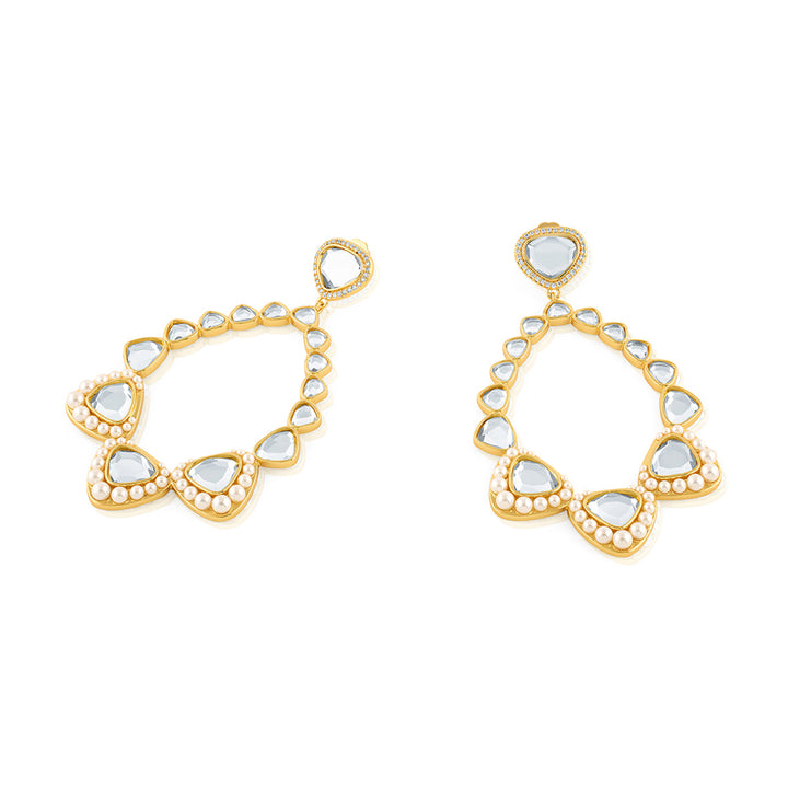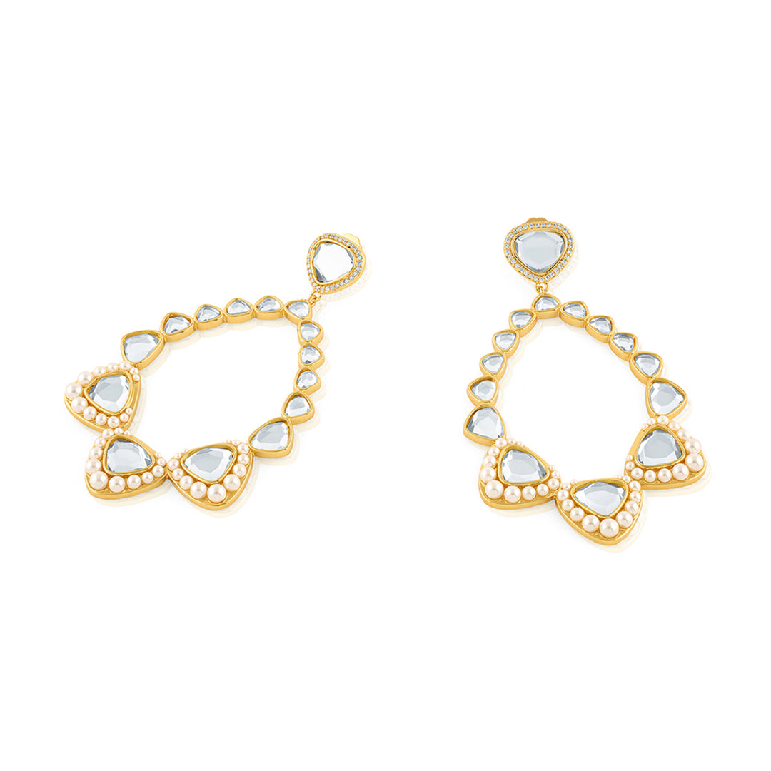 Add some sparkle and sophistication to your festive look with Alizeh Mirror Danglers. The gold plating with e-coating ensures long-lasting shine, while the dangler design and combination of mirror, pearl, and cz add a touch of elegance. Made from brass, these earrings are a must-have for any collection.