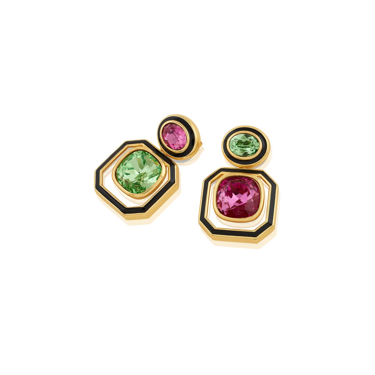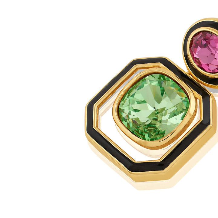 Inspired by the aquatic life, these earrings are crafted in brass and plated with 18k gold. Perfect to kickstart summer dressing, these earrings featuring enamel work and purple and peridot crystals will elevate everything from breezy sun dresses to floral jumpsuits.
