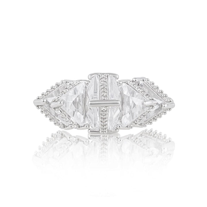 Spruce up your noon to night looks with this Art Deco Infinity Band. This slim band is crafted from high-quality brass and features a rhodium plating with e-coating for added durability and shine. The custom-cut CZ stones and Art Deco-inspired design make it a jewellery box winner.