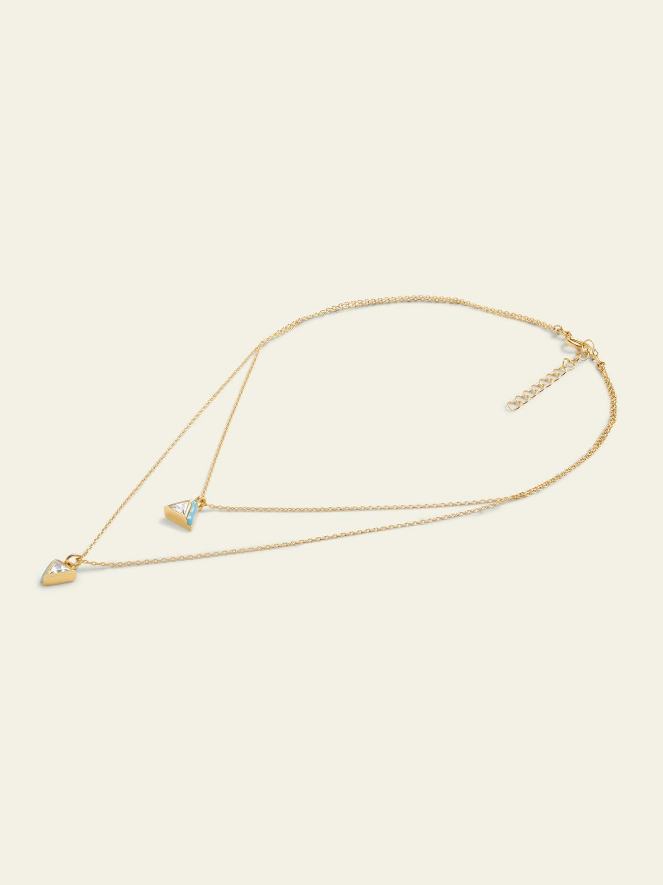 Introducing our Blue Triangles Necklace - a playful addition to your jewelry collection! Made with CZ and 18-karat gold plating, this layered necklace is perfect for everyday wear or adding some bling to your party outfit.