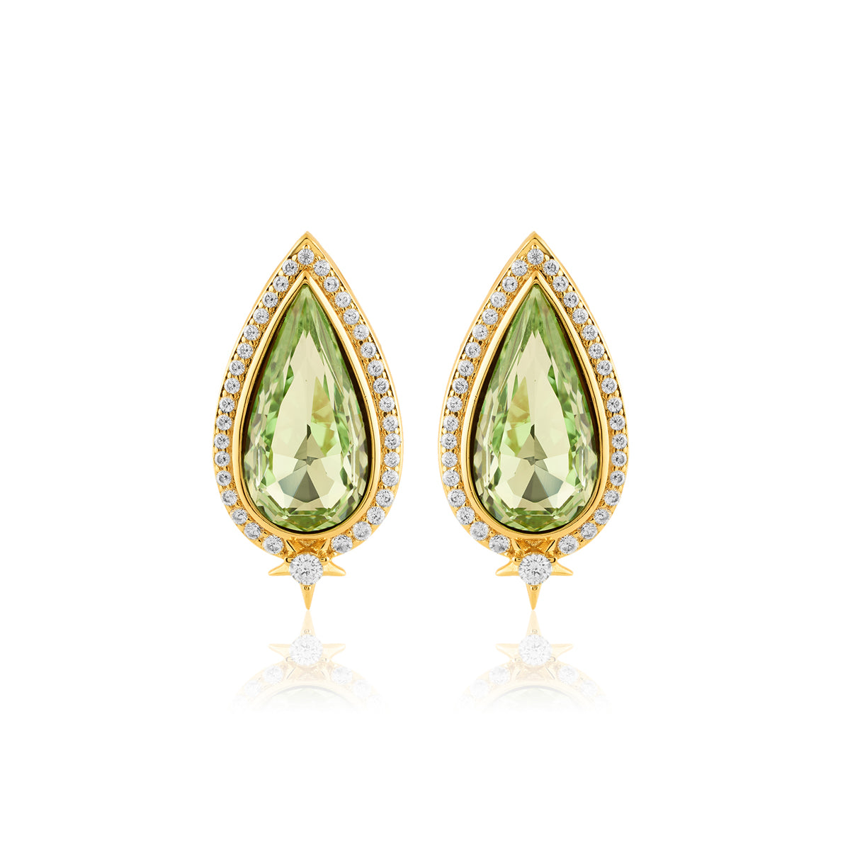 lluminate every occasion with these statement earrings, crafted in brass with 18k gold plating. Featuring crystal zirconia stones, they echo cosmic constellations and ancient symbolism. Perfect for weddings, cocktails, and festive nights.