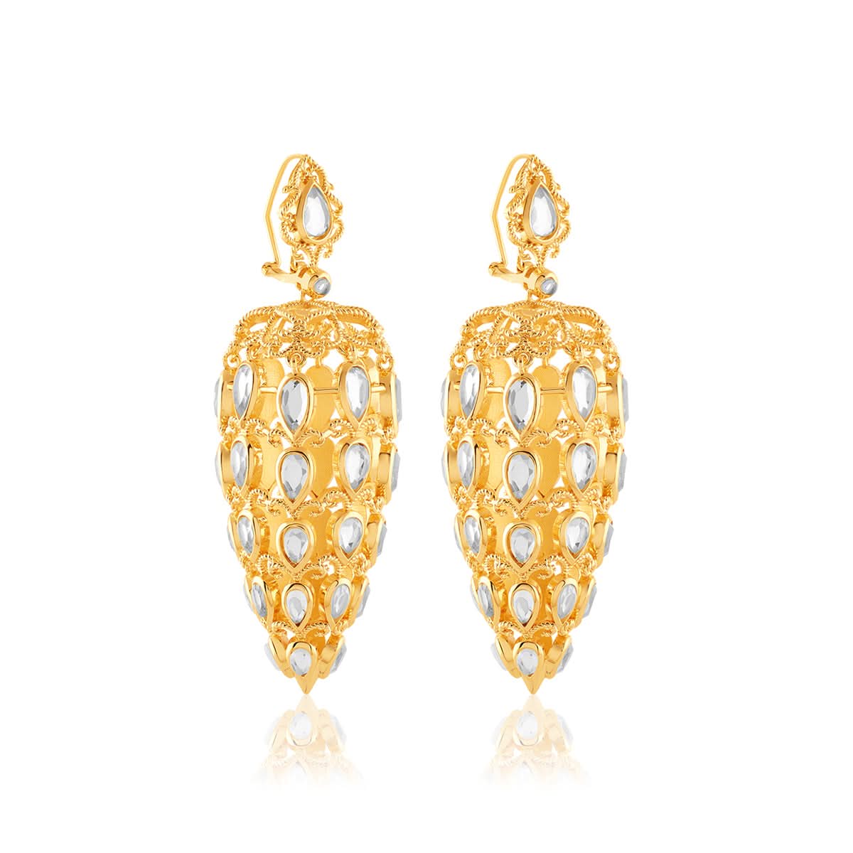 Turn heads with Isharya’s gold-and-white statement danglers, crafted in hypoallergenic 18k gold-plated brass with hand-cut mirrors inspired by Portuguese filigree. Perfect for weddings, parties, and festive nights. Bold. Luxe. Unforgettable. Shop the festive edit now.