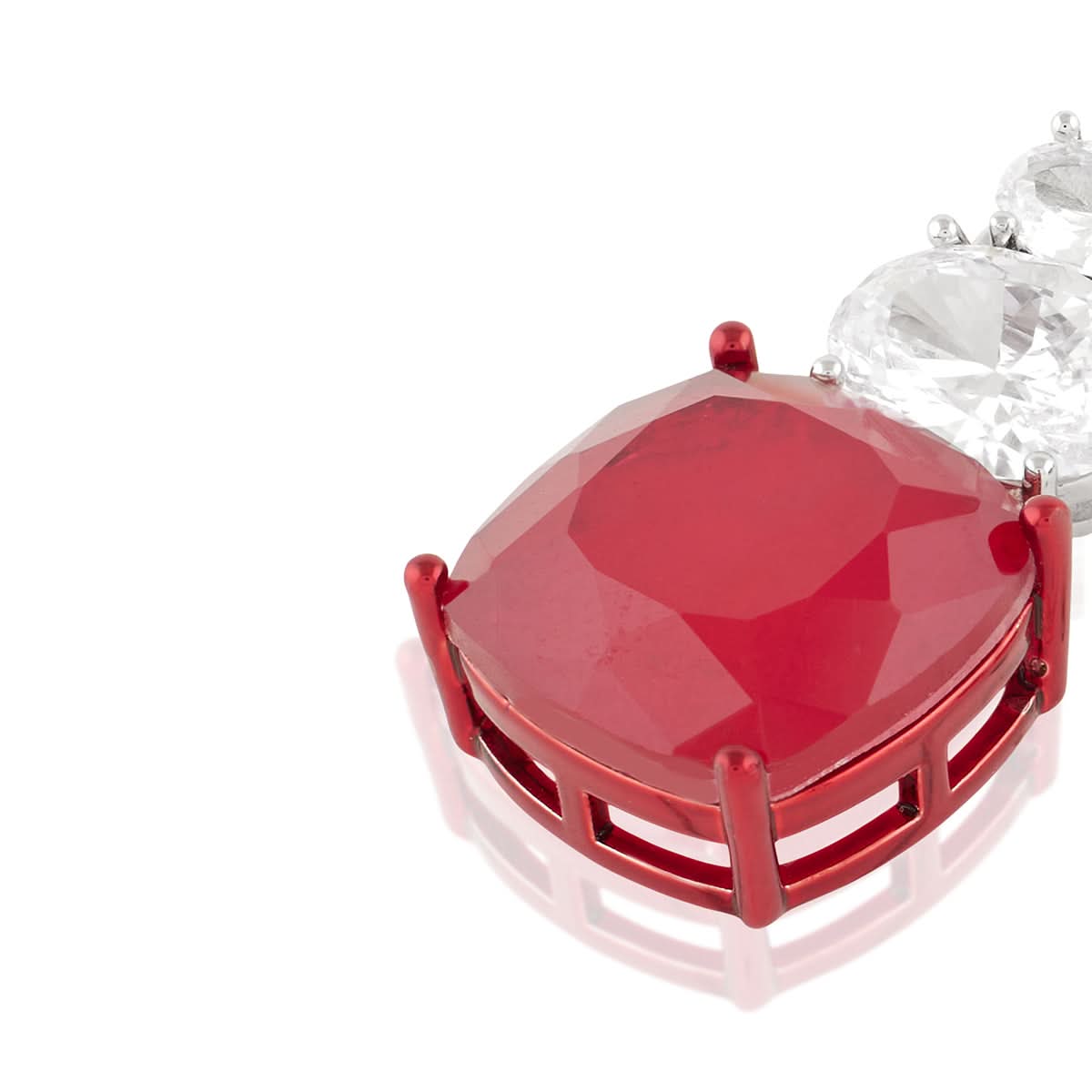 Introducing the Crimson Elegance Dangler Earrings from the Isharya High Collection. These statement earrings feature high-quality crystal zirconia and ruby doublet stones in a stunning combination of silver, white, and red. Crafted in rhodium-plated brass, they embody timeless design with a modern twist.