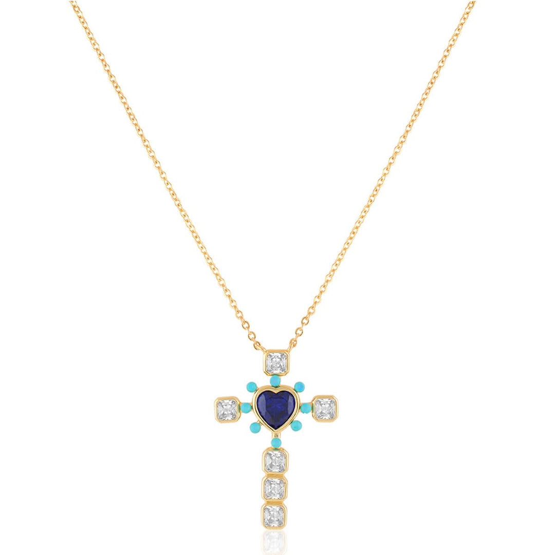 Inspired by the playful spirit of summer, this necklace is crafted in brass and plated with 18k gold. Featuring crystal zirconia and lapis lazuli stones, this lightweight necklace offers the perfect pop of colour to your summer neck stack.