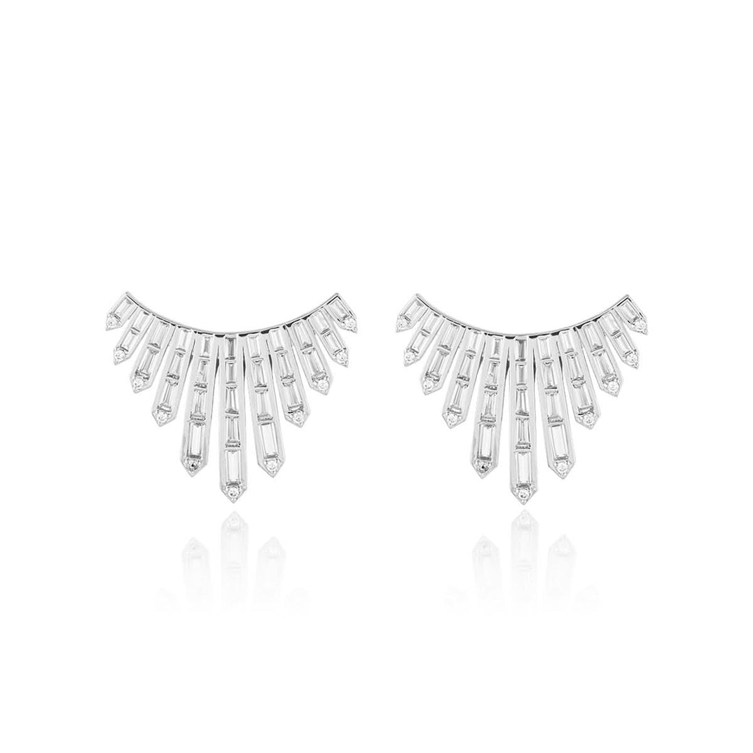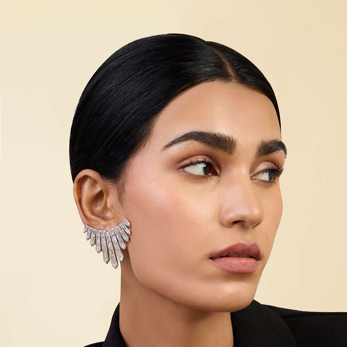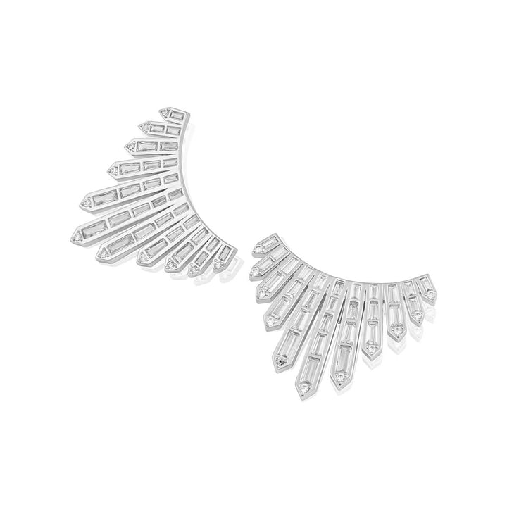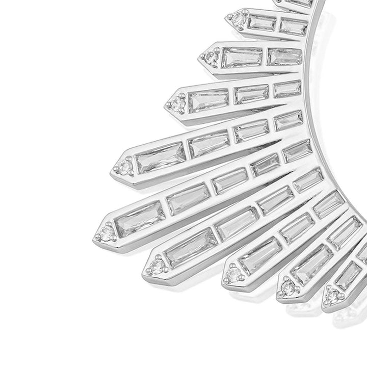 Made with rare custom-cut CZ stones and a rhodium plating with e-coating, these Crown Jewels Statement Studs are a must-have for any fashion-forward individual. The brass construction and intricate stud design make these earrings a statement piece, perfect for adding a touch of glamour to any outfit. Get transported to the Art Deco era with these.