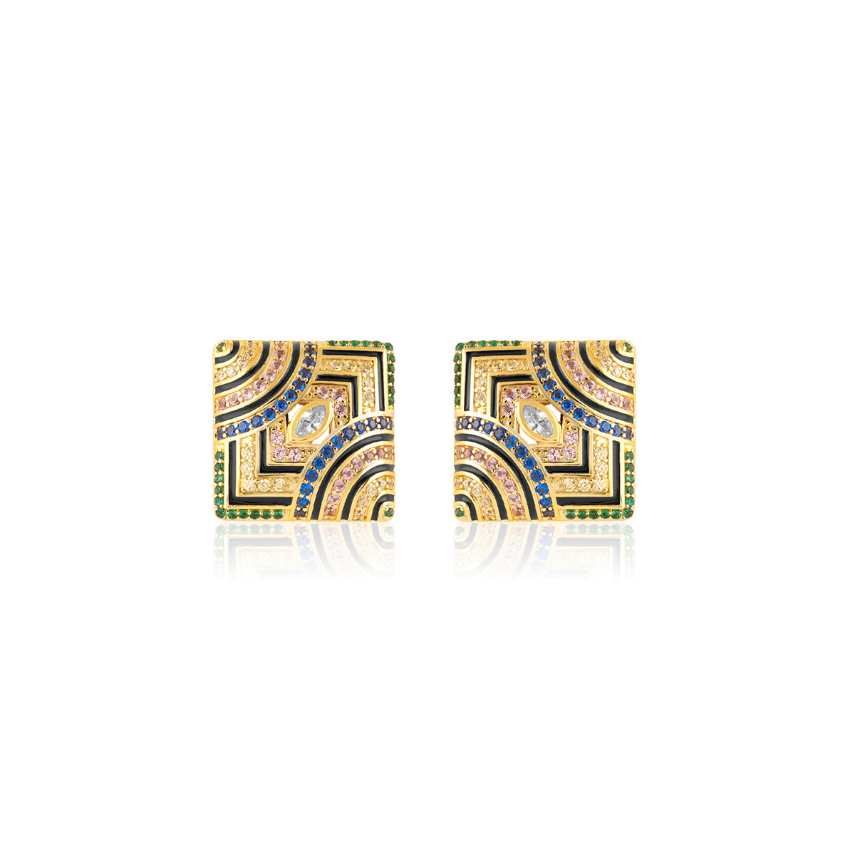 Step into surreal sophistication with these multicolour earrings. Crafted in brass with 18k gold plating, enamel work and crystal zirconia, they’re stackable, striking, and hypoallergenic. Perfect for cocktail nights and parties. Style boldly—shop I For Isharya’s latest edit.