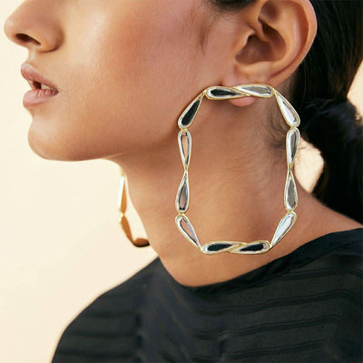 These earrings state goddess vibes with a hint of luxe. The posh aesthetic of mirror will always turn heads in a crowd. Wear the ultimate power suit or your festive avant-garde look. These earrings will be the penultimate style quotient in your wardrobe.