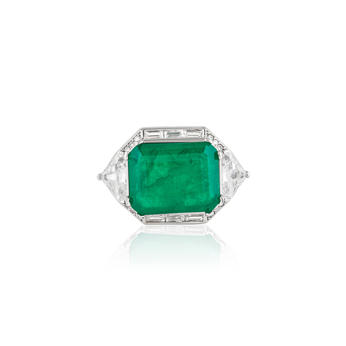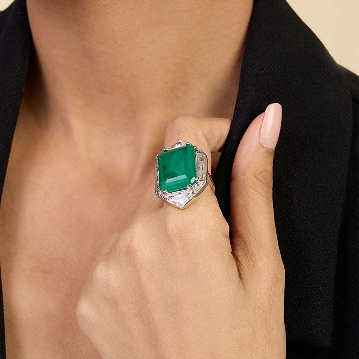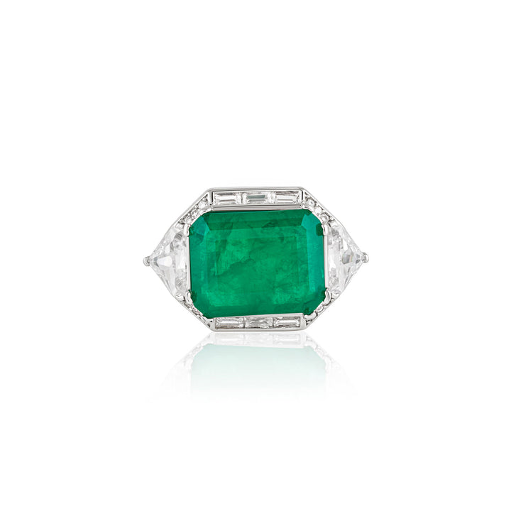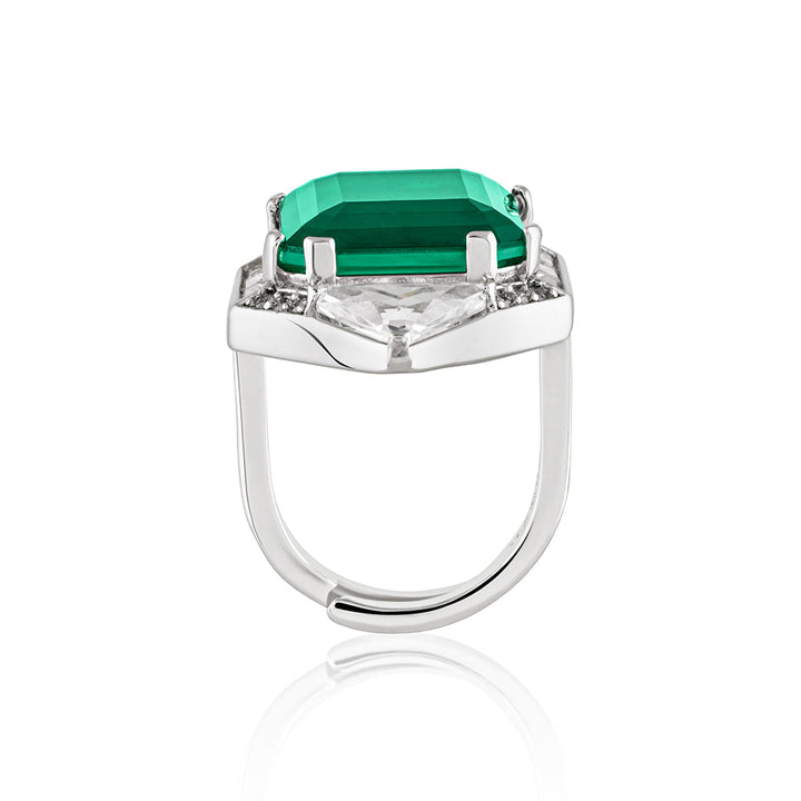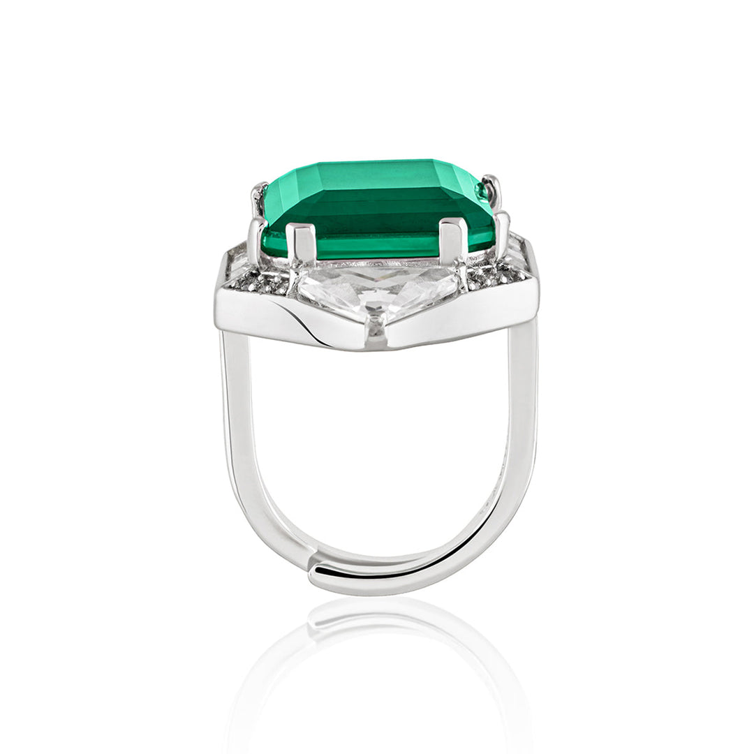 Get transported to the Art Deco era with this exquisite Doublet Dark Emerald Cocktail Ring. With a CZ stone and Doublet Dark Emerald, this ring features rhodium plating for added durability. Its Art Deco-inspired design and high-quality materials make it a perfect plus-one for any occasion.
