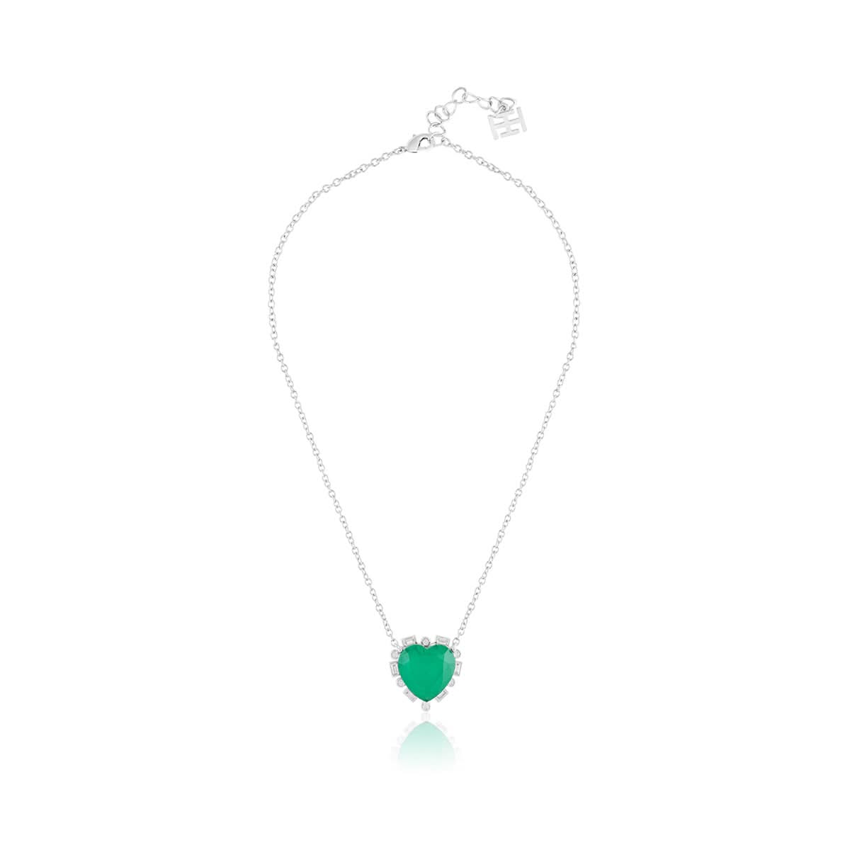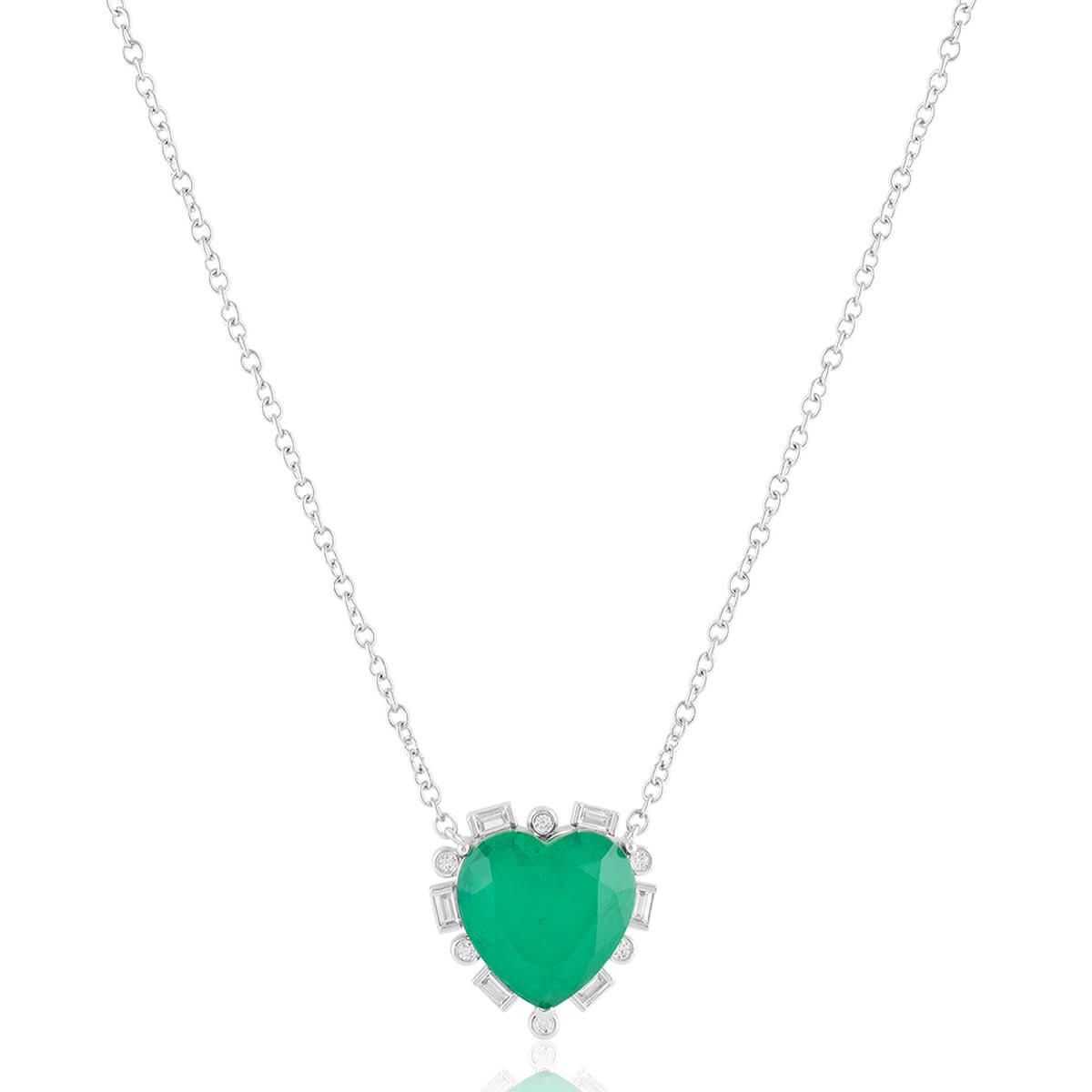 Fall in love with the Emerald Heart Pendant Necklace from Isharya's High Collection. Featuring emerald doublet stones and high-quality crystal zirconia, this bold statement piece is plated with rhodium for an unmatched finish.