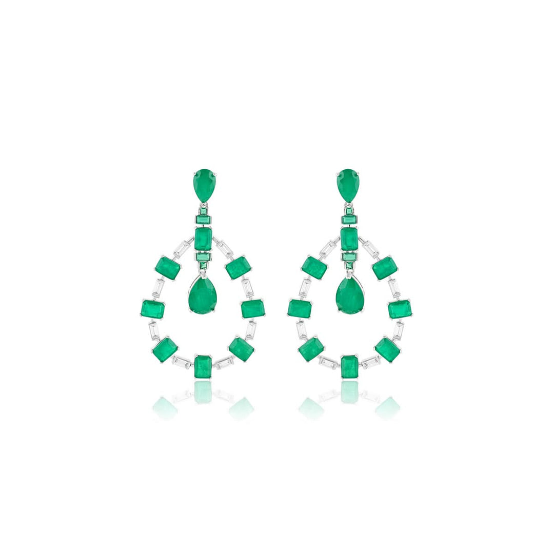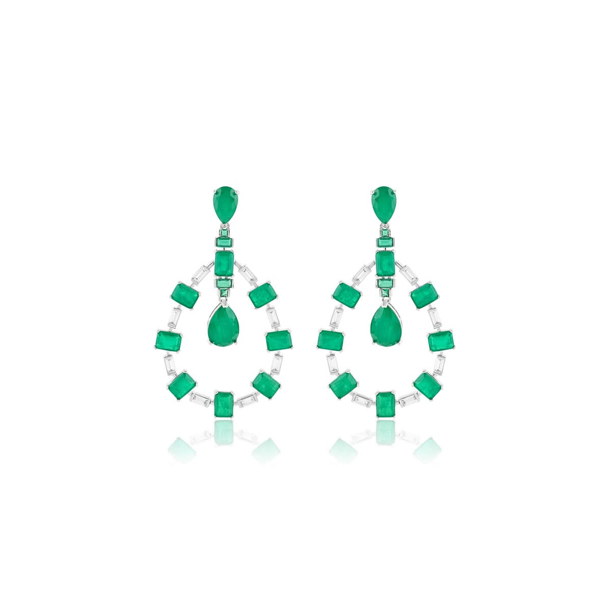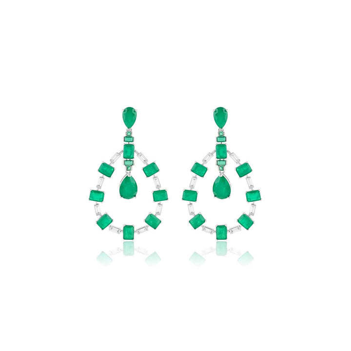 Make a bold statement with the Emerald Luxe Dangler Earrings from Isharya’s High Collection. Featuring high-quality crystal zirconia and dark emerald doublet stones, these silver and green danglers are crafted in rhodium-plated brass for a luxurious finish.