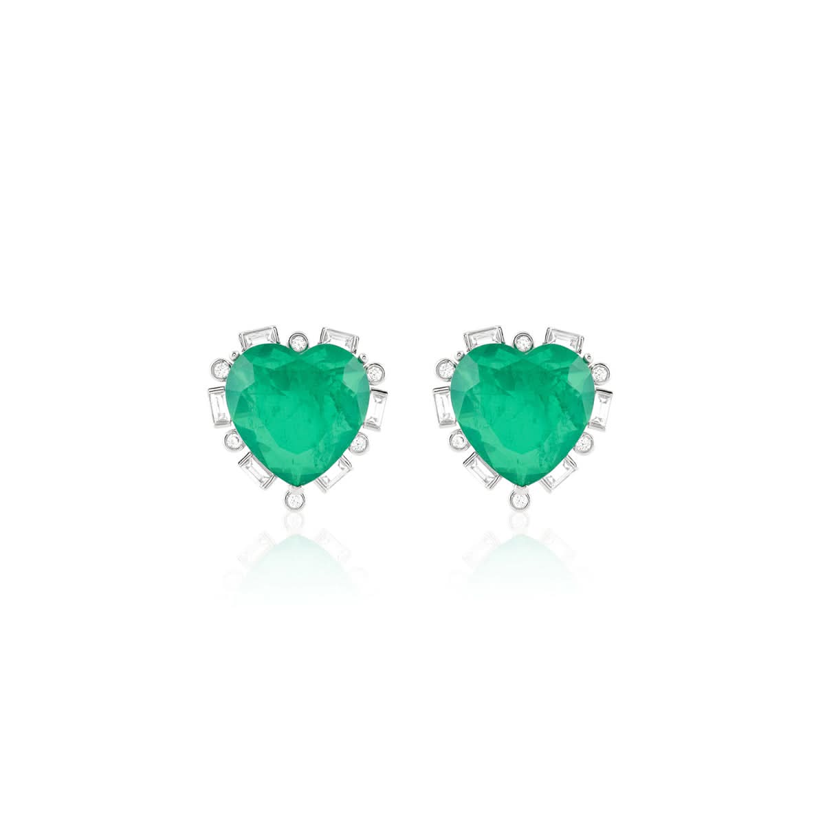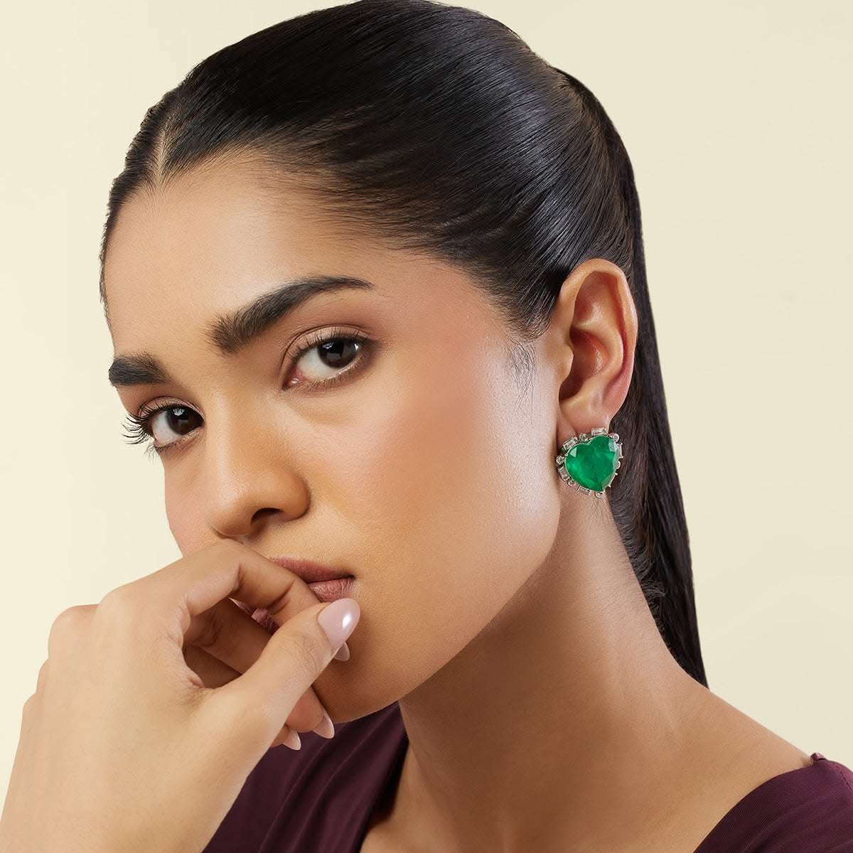 Discover the allure of the Emerald Radiance Heart Studs from the Isharya High Collection. These bold, heart-shaped studs feature high-quality crystal zirconia and emerald doublet stones, set in rhodium-plated brass. Inspired by timeless designs and classic tennis jewellery, they are a statement piece that radiates understated luxury.