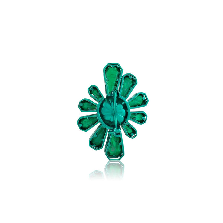 Make a bold statement with this exquisite brooch in green, dark rose, and gold. Featuring doublet stones, crystal zirconia, and resin detailing, it's crafted from 18k gold-plated brass and inspired by whimsical garden motifs. Hypoallergenic and luxurious.