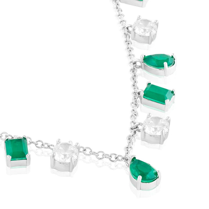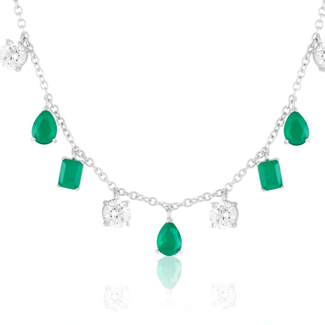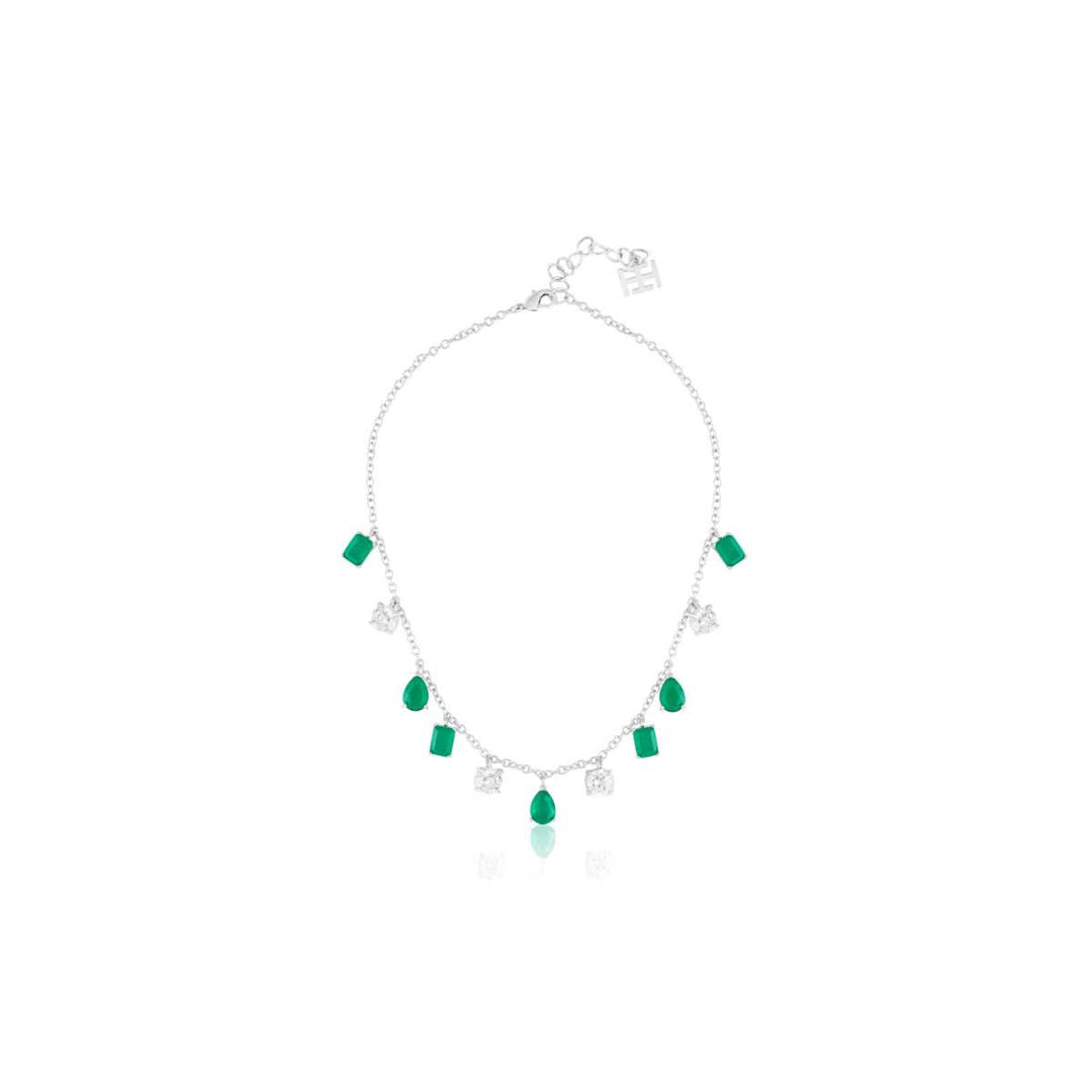The Eterna Emerald Charm Choker from Isharya’s High Collection redefines elegance. Featuring high-quality emerald doublet stones and crafted in rhodium-plated brass, this silver and green piece adds a bold touch to any social gathering or cocktail party.