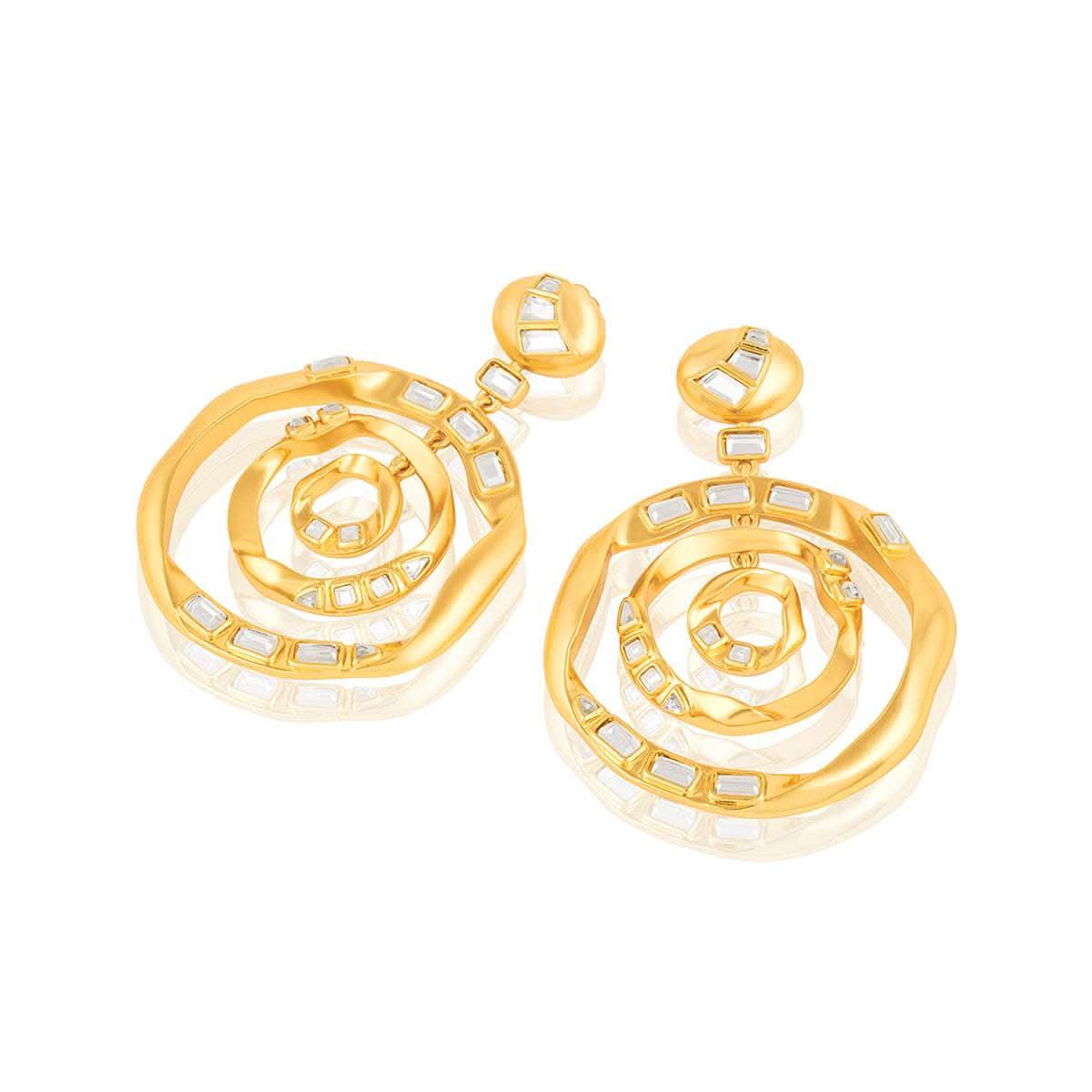 These vintage-inspired Festive Magic Danglers are crafted in brass and plated with 18k gold. They feature exquisite mirror work and can be styled with everything from heirloom sarees to cocktail dresses for every celebration.