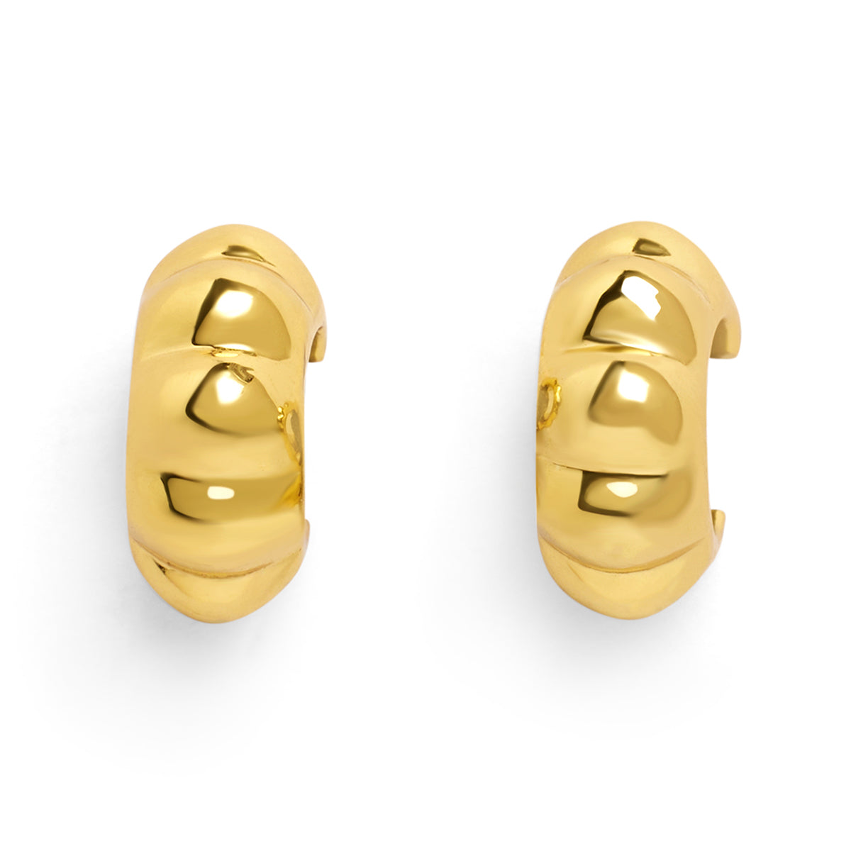 Enhance your style with our Gold Melon Ear Cuff. Made with 18-karat gold plating, this elegant accessory will add a touch of luxury to any outfit. Its unique melon design will surely make a statement. Elevate your look with this sophisticated and versatile ear cuff.