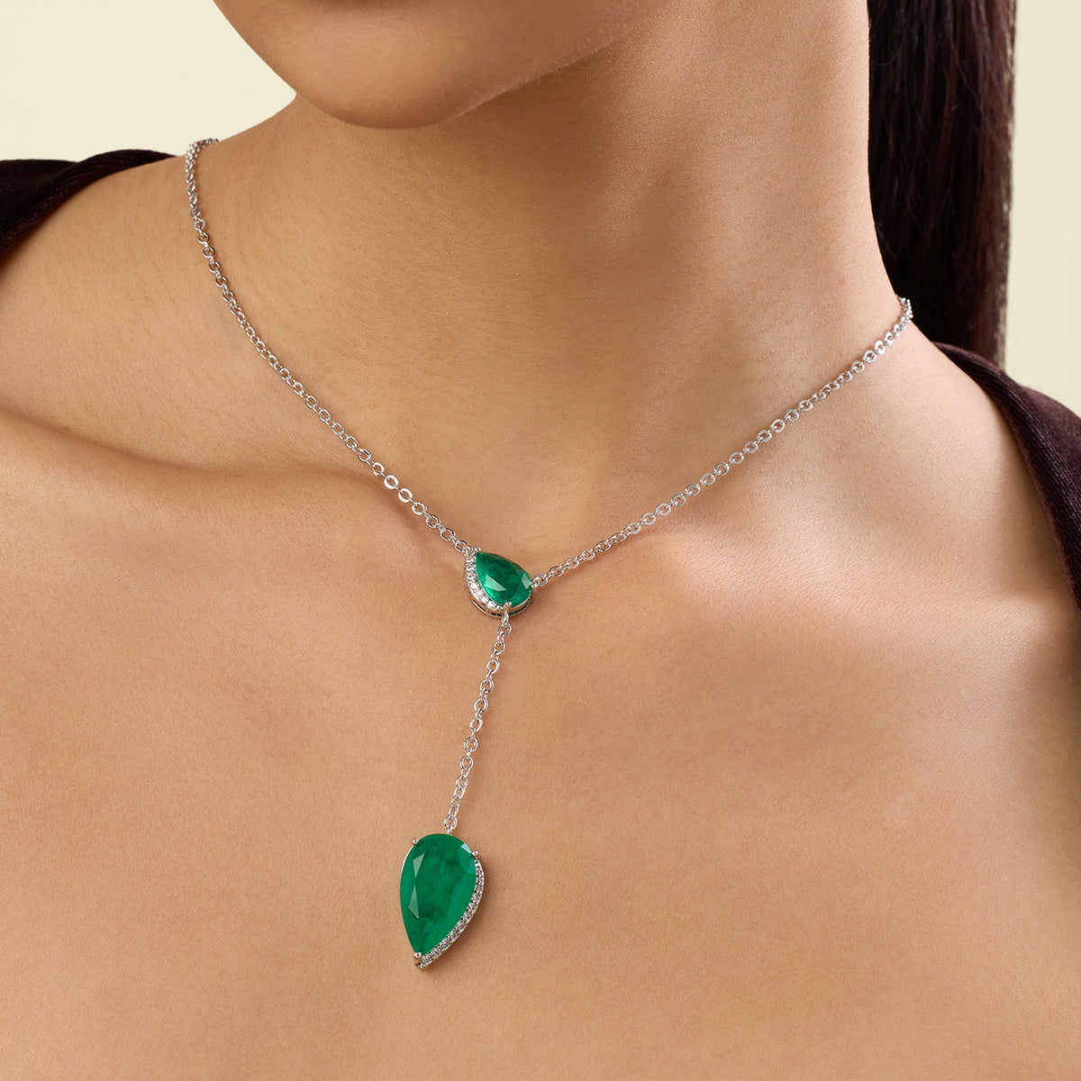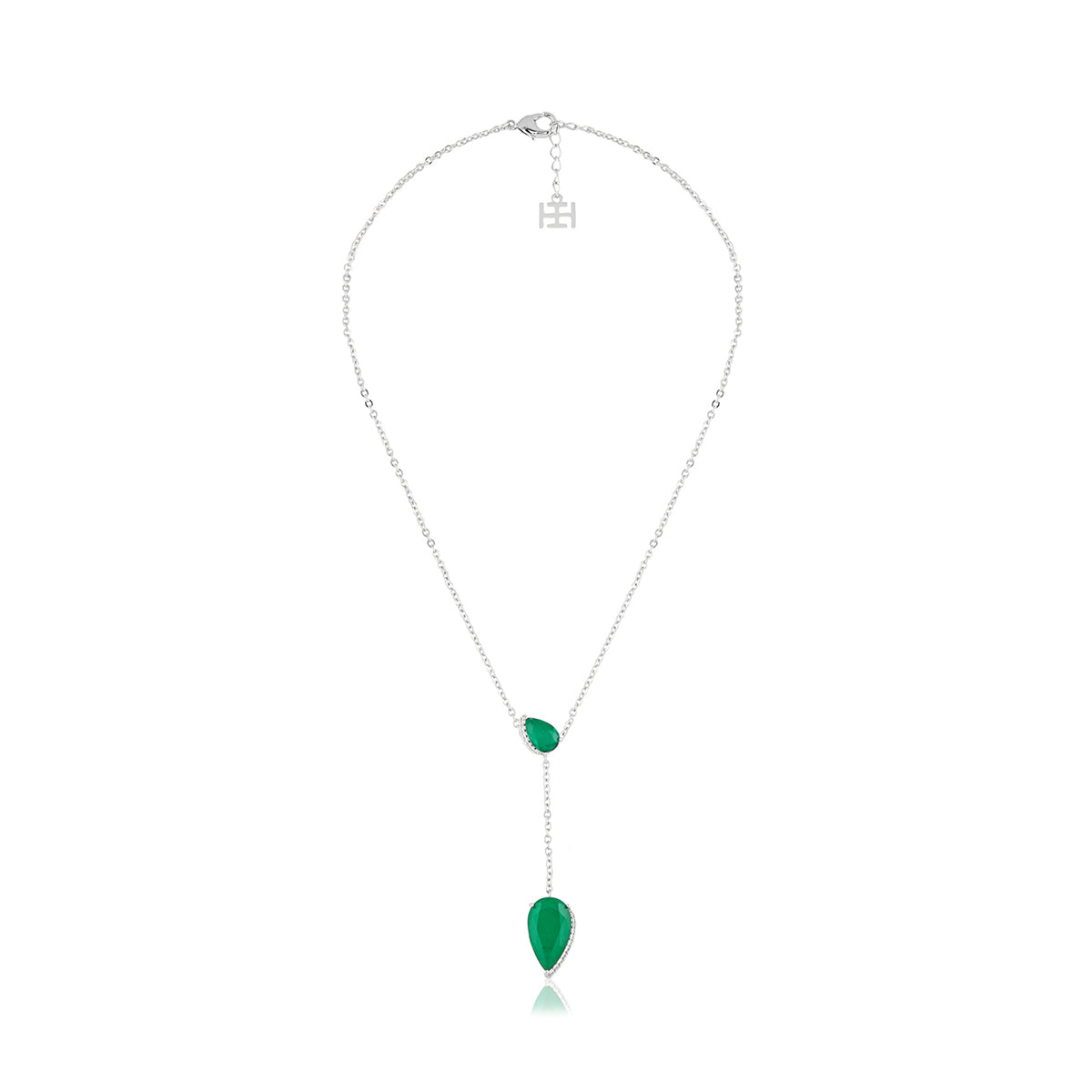Inspired by the Art Deco era, this white and green necklace stuns with crystal zirconia and Botox emeralds. A rhodium-plated brass masterpiece, hypoallergenic and luxe—ideal for cocktail nights and celebrations. Own your statement look today.