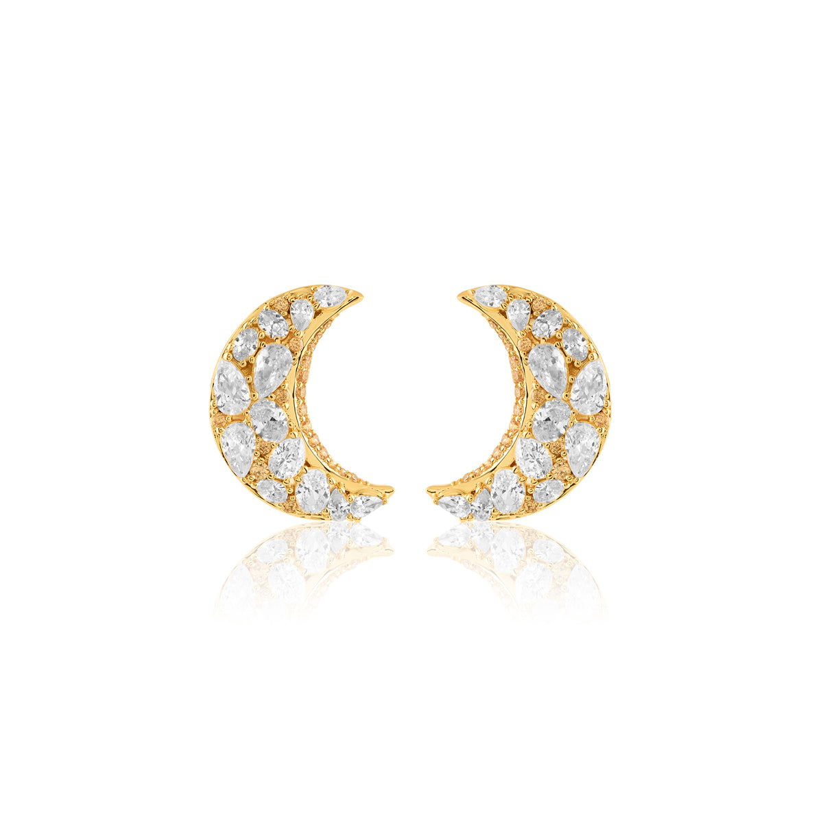 lluminate every occasion with these statement earrings, crafted in brass with 18k gold plating. Featuring crystal zirconia stones, they echo cosmic constellations and ancient symbolism. Perfect for weddings, cocktails, and festive nights.