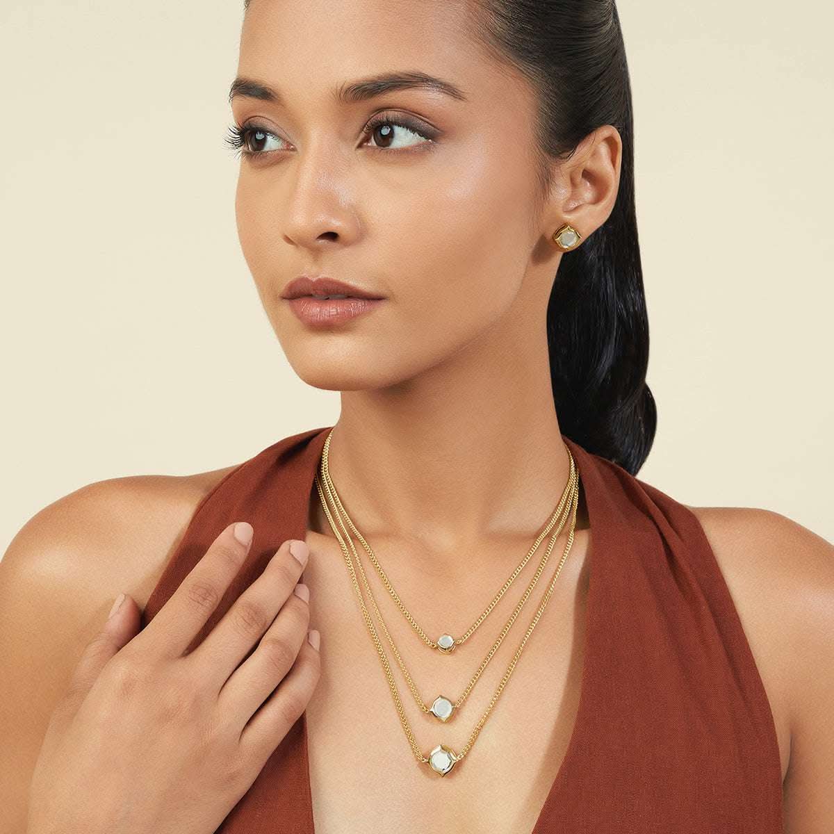 Styling Tip: Layer the necklace over a sleek, monochrome outfit for an elevated statement look at any occasion.