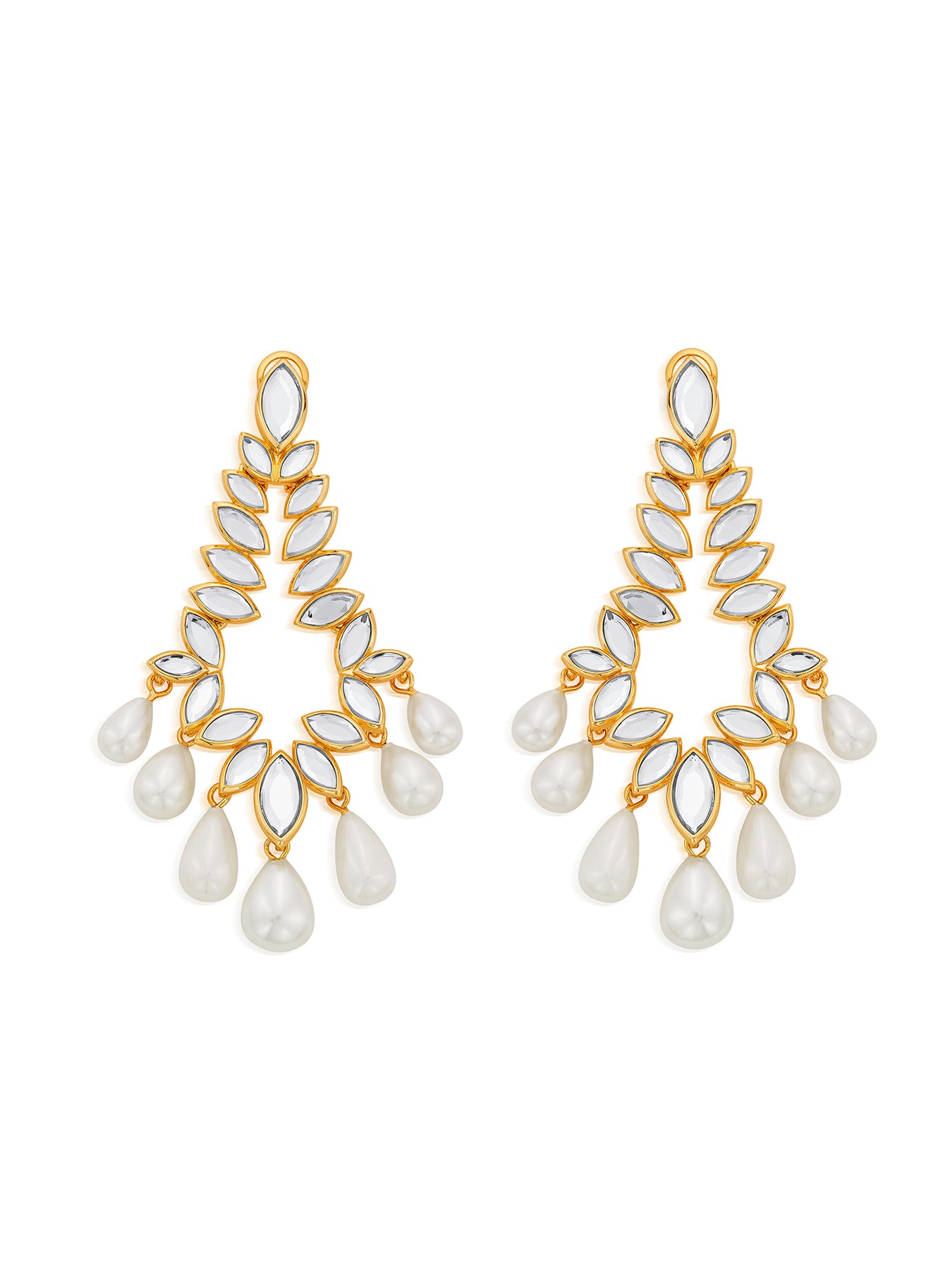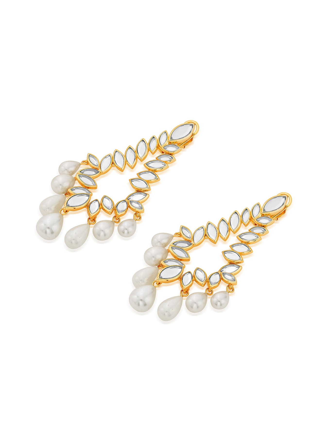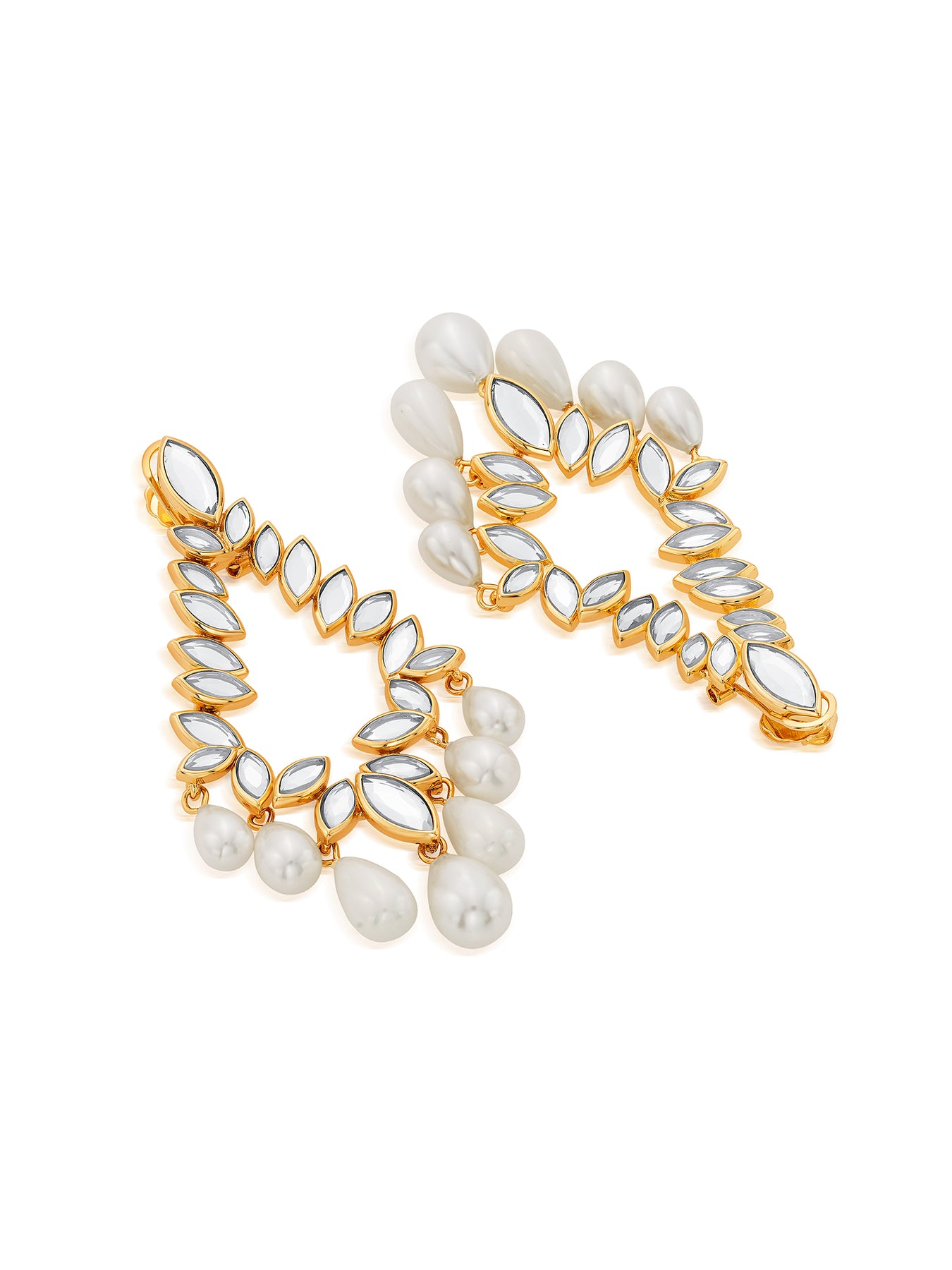 Make a statement in these marquise mirror and pearl kite-shaped chandelier earrings. Life is a runway and these baubles will surely make heads turn. Pair them with a power suit, a ball down or your fave traditional lehenga. You can never go wrong with these.