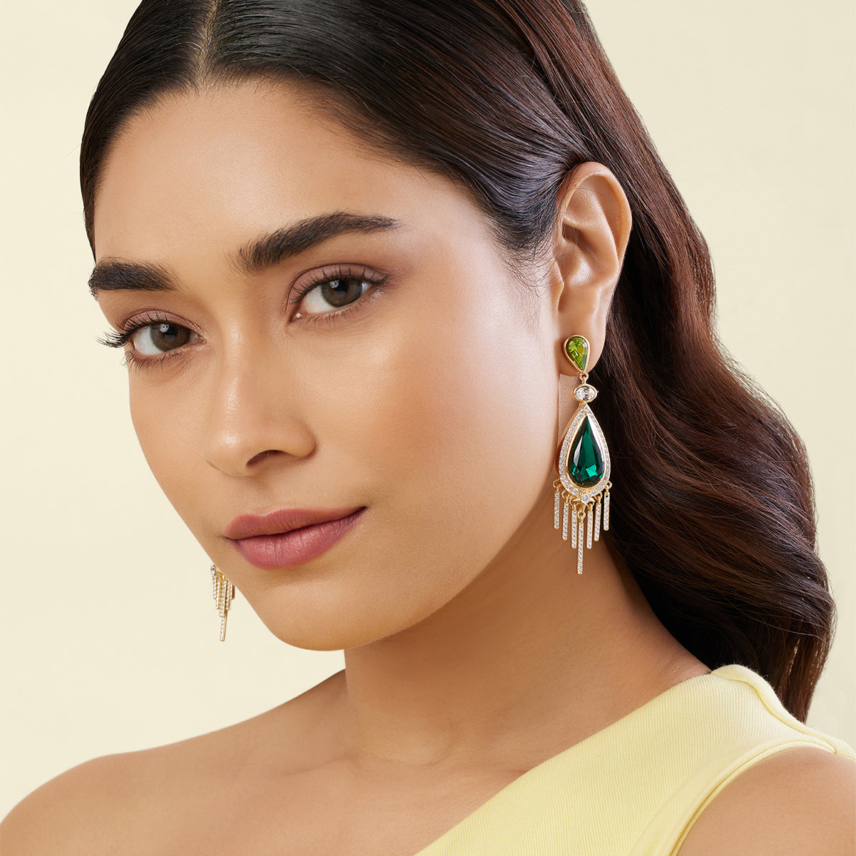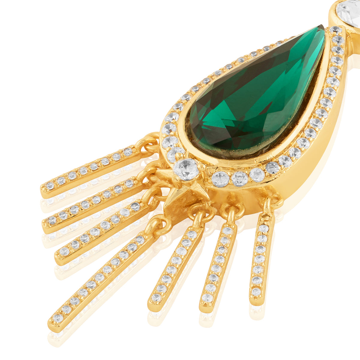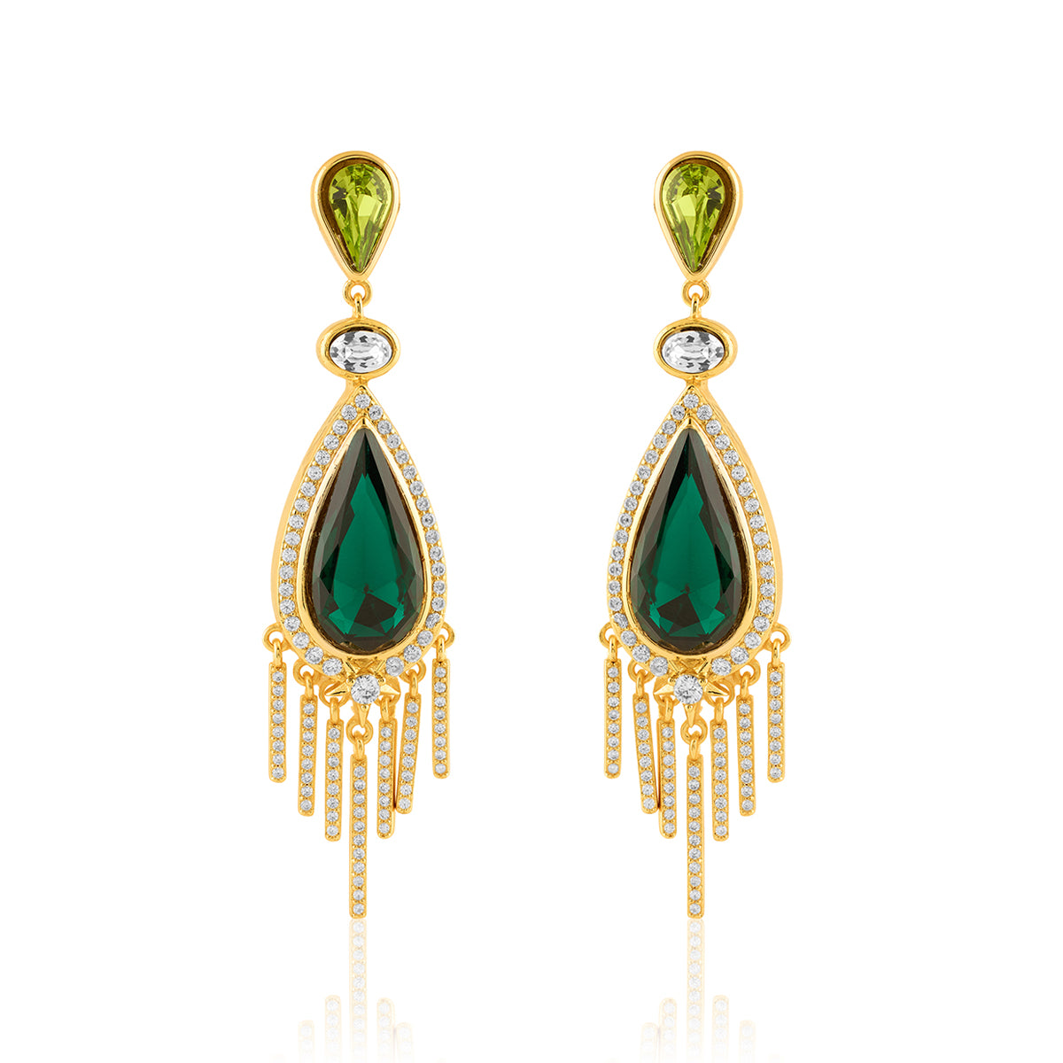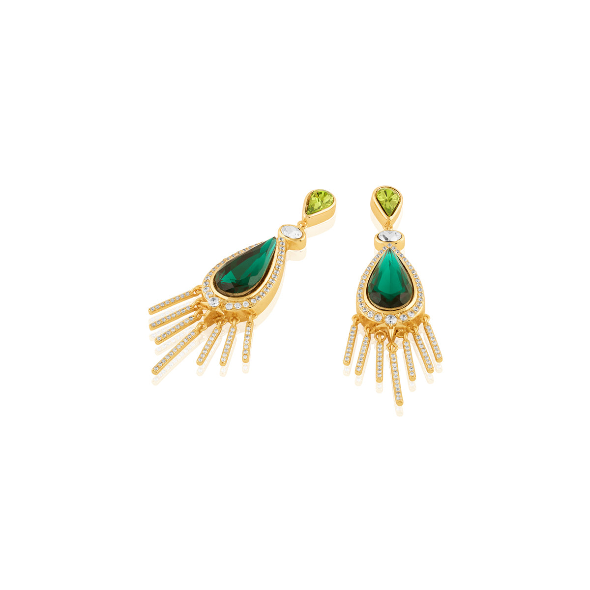 lluminate every occasion with these statement earrings, crafted in brass with 18k gold plating. Featuring crystal zirconia stones, they echo cosmic constellations and ancient symbolism. Perfect for weddings, cocktails, and festive nights.
