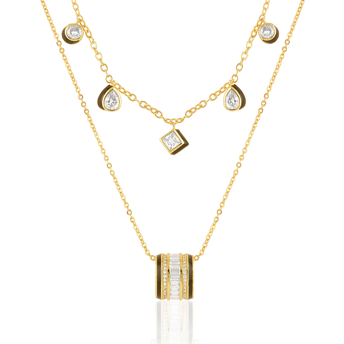 This necklace set from I For Isharya features a cute pendant necklace and matching choker necklace for layering. Crafted from brass and plated with 18k gold with CZ stones, this set is perfect for gifting or keeping. Wear it from AM to PM for parties, brunches and everything in between.