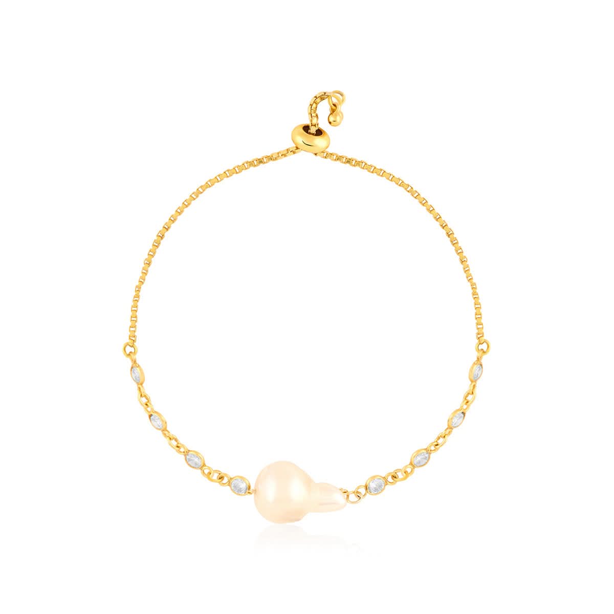 This minimalistic bracelet is crafted in brass and plated with 18k gold. Perfect for layering, this pearl-adorned piece will pair effortlessly with your Indian and western outfits.