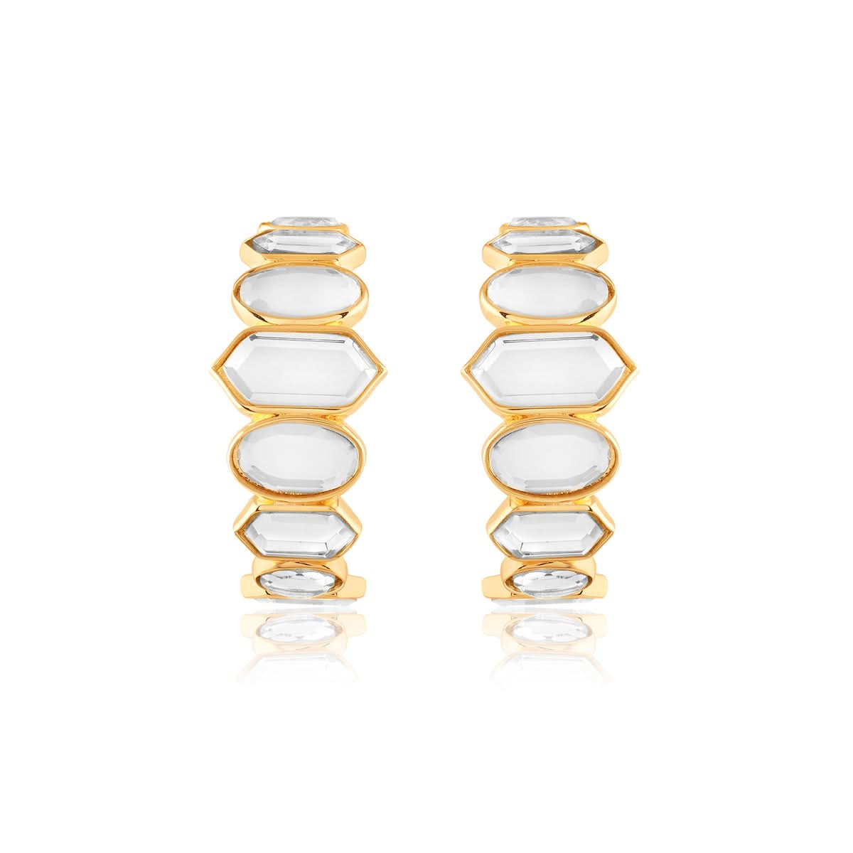 Turn heads with Isharya’s gold-and-white statement hoops. Featuring hand-cut mirrors and Portuguese-inspired filigree in 18k gold-plated brass, they’re hypoallergenic and built to impress. Perfect for weddings to cocktails—shop the festive must-have now.