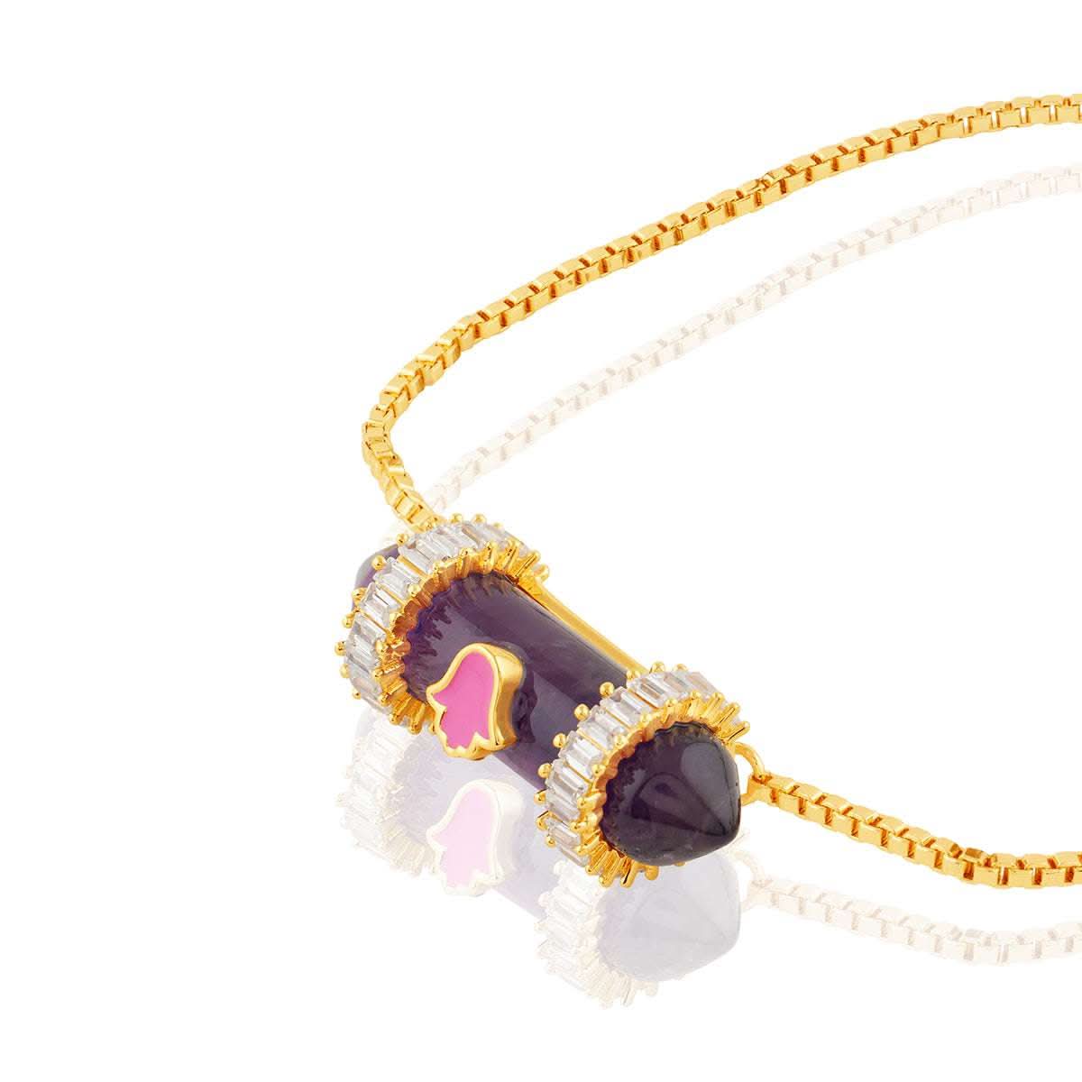 The Mystic Bond Bracelet blends the soothing energy of amethyst with sparkling crystal zirconia, finished in 18k gold-plated brass. Hypoallergenic and adjustable, this bold yet elegant piece brings together healing, style, and intention.