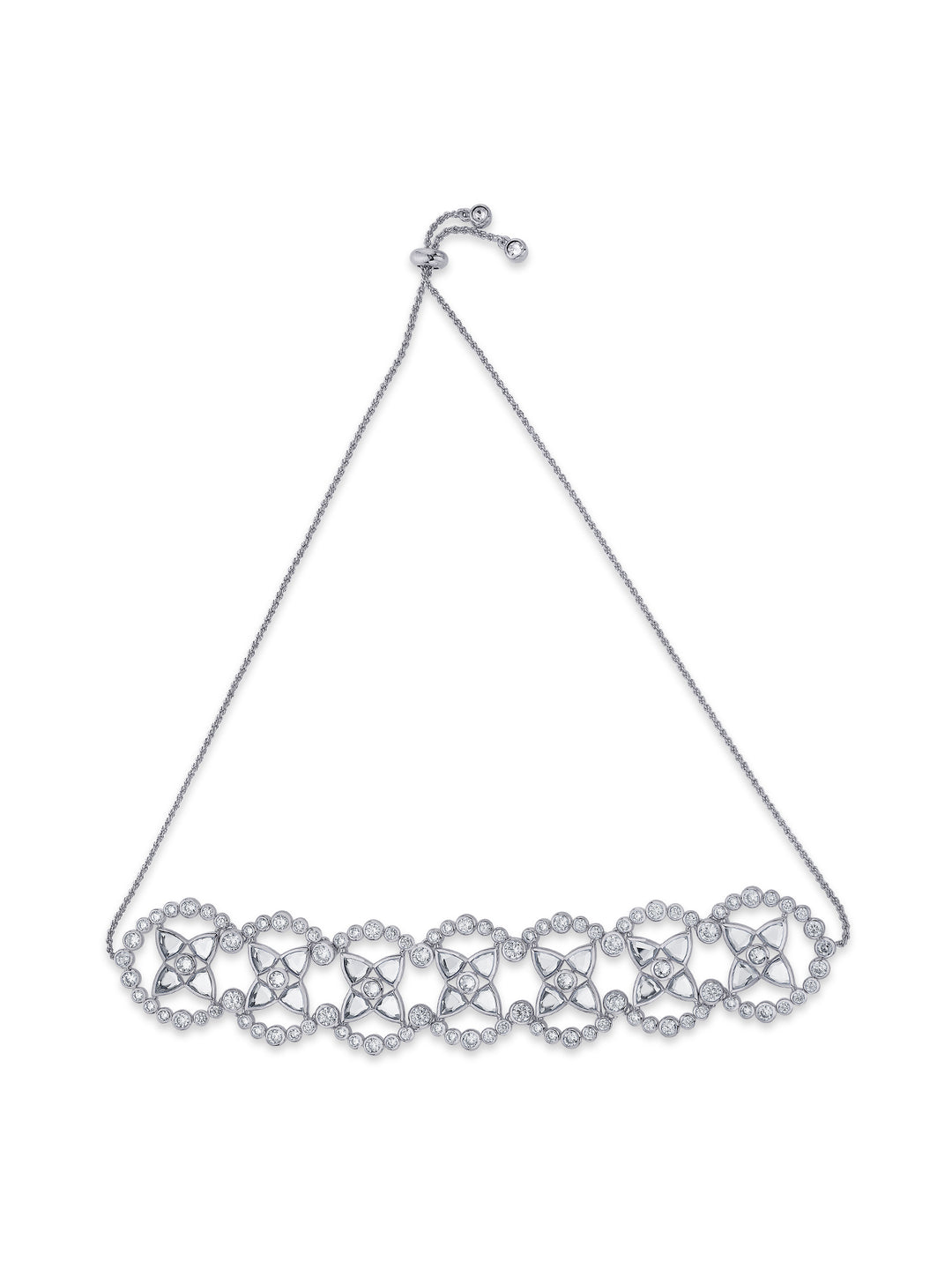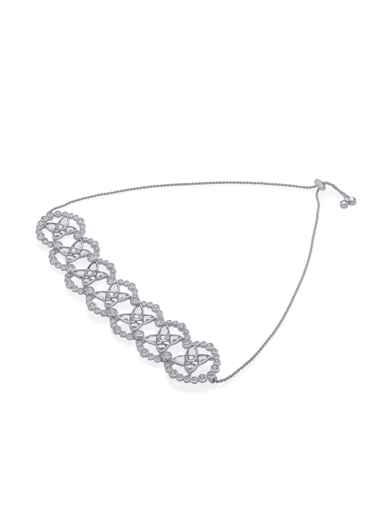 Reminiscent of a magnificent starry night, this choker features exceptional mirror and CZ detailing. A festive savior if ever there was one! Pair this with choker with pristine whites for an angelic look.