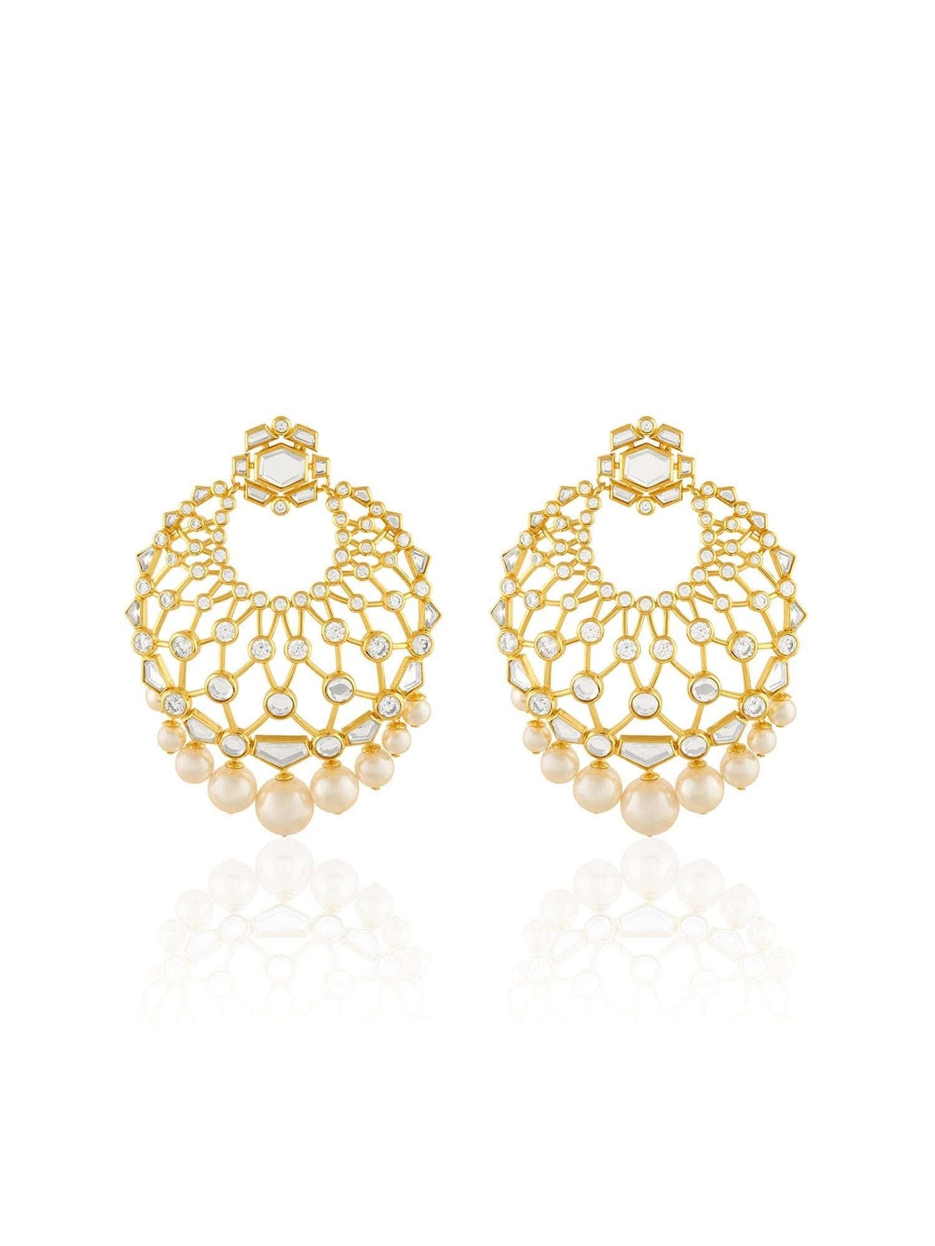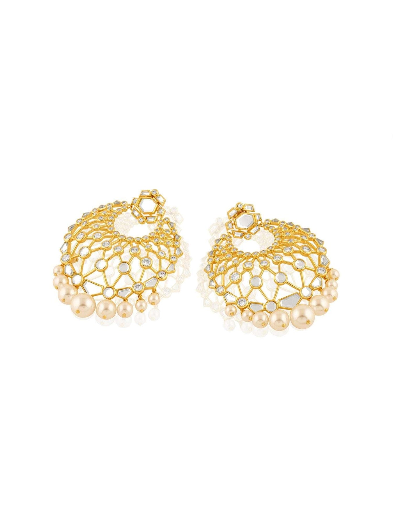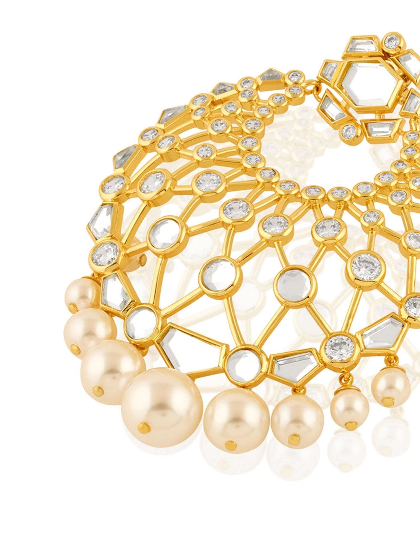 Effortlessly elevate your festive outfit with our Noor Moon Baali earrings. These Indian statement pieces feature gold plating with e-coating, adding a stunning shine. The intricate moon bali design is complemented by a touch of elegance with the addition of a mirror and pearl. Made from durable brass, these earrings are a must-have for any collection.