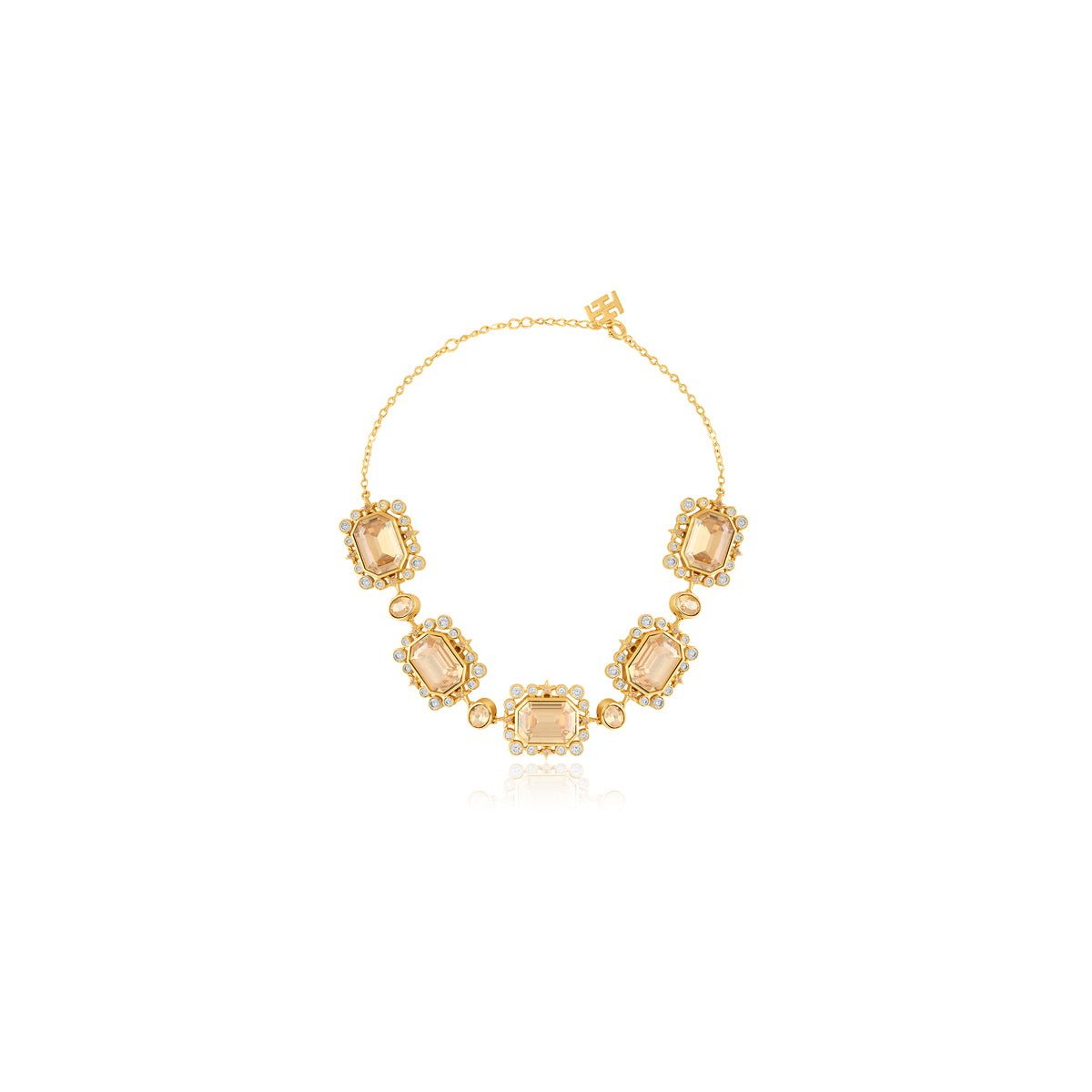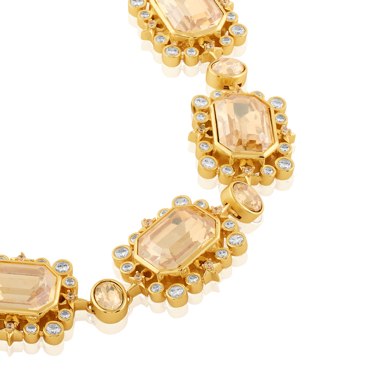 Turn every head this season with our multicolour statement necklace, crafted in brass with 18k gold plating. Adorned with crystal zirconias, it draws from cosmic constellations and ancient symbolism. Perfect for weddings, cocktails, and festive soirées.