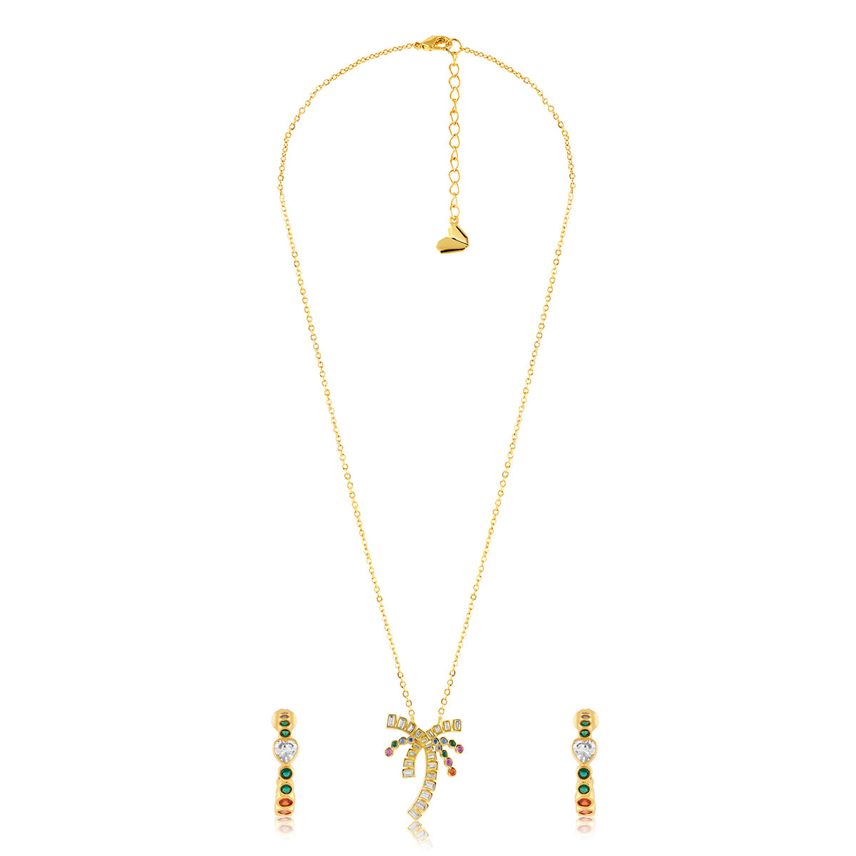 This necklace set from I For Isharya features a cute pendant necklace and matching earrings. Crafted from brass and plated with 18k gold with CZ stones, this set is perfect for gifting or keeping. Wear it from AM to PM for parties, brunches and everything in between.