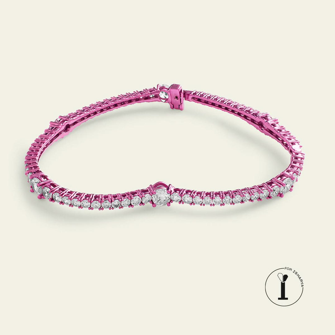 Spread love and style with our Pink Heart Bangle! This bracelet is perfect for both everyday wear and party wear, featuring our Isharya Signature Colored Plating and dazzling CZ stones. Embrace your playful side and add this bangle to your collection today!