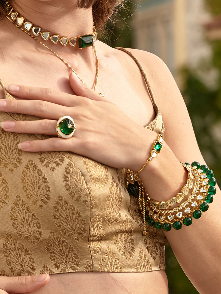 Ruhaniyat Green Hydro Mirror & CZ Statement Cuff
