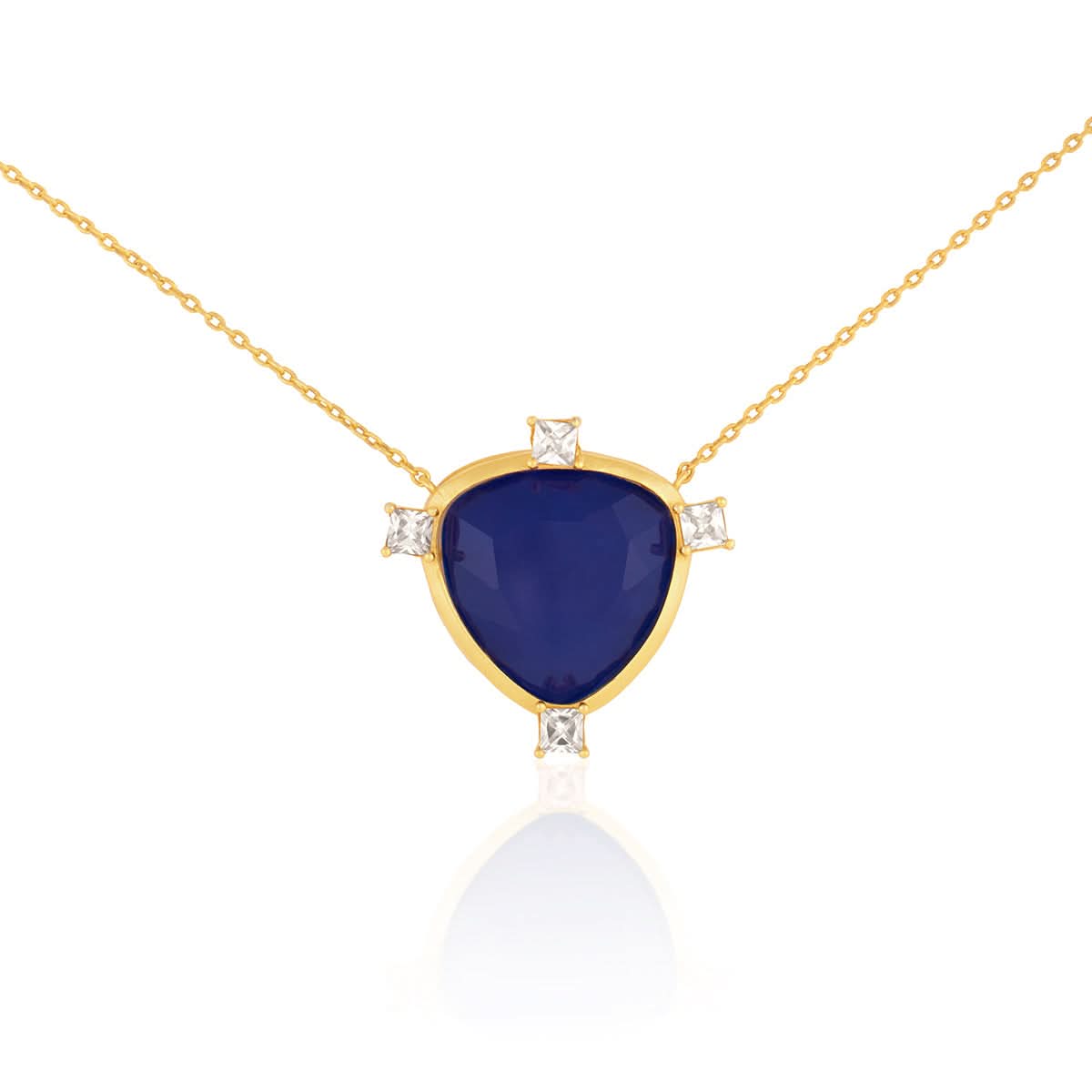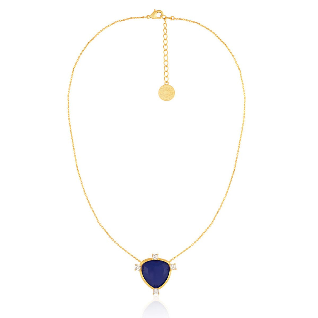 This vintage-inspired Sapphire Mirros Layered Necklace is crafted in brass and plated with 18k gold. It features exquisite blue doublet and mirror-work pendants with double-layered chains to take the stress out of stacking. Style it with everything from heirloom sarees to cocktail dresses for every celebration.