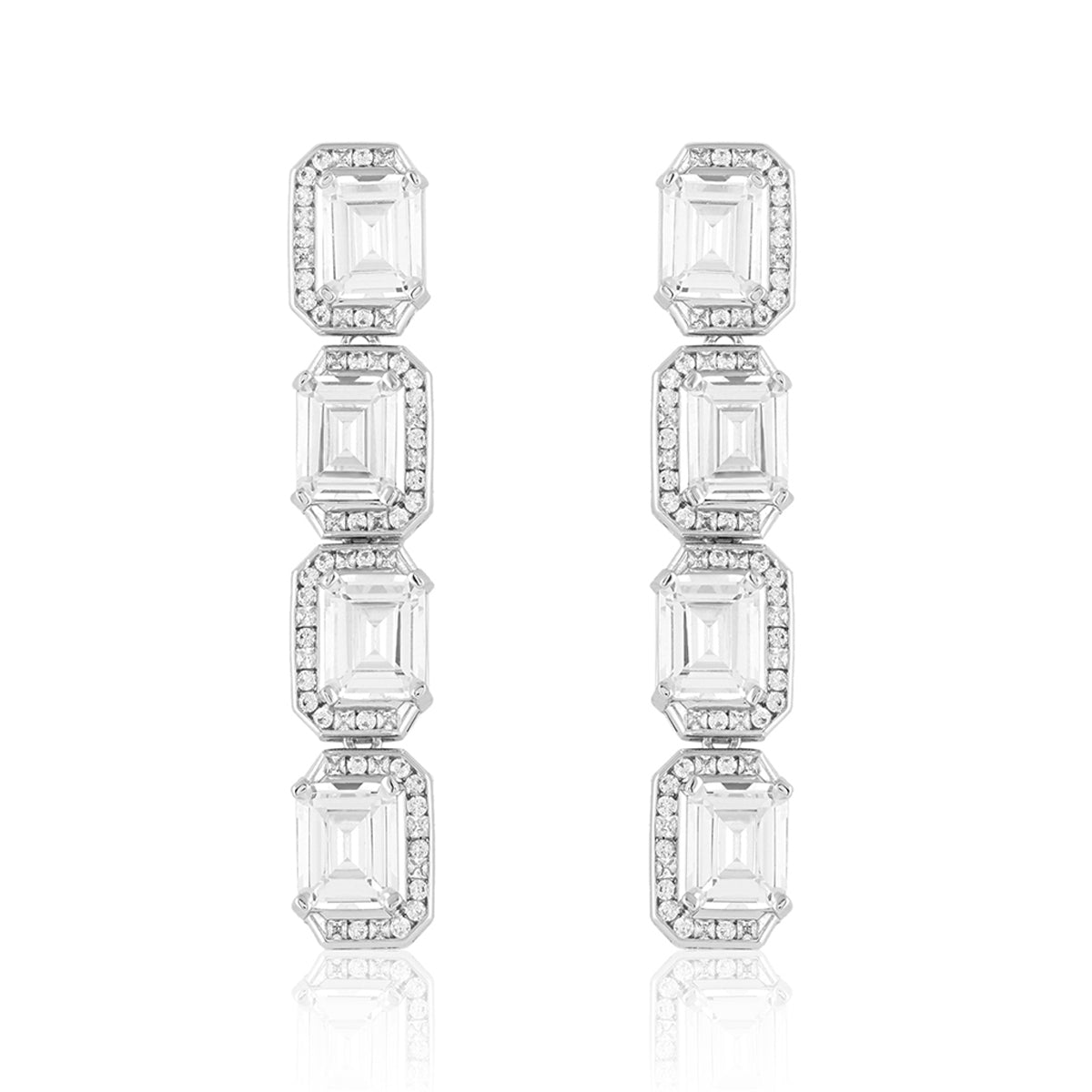 Turn heads with Isharya’s dangler earrings, featuring special-cut crystal zirconia stones. Crafted in brass with rhodium plating, these hypoallergenic statement earrings exude timeless glamour. Perfect for weddings, festive soirées, and cocktail nights. Shop unmatched luxury now.