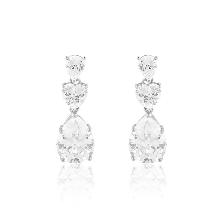Add sophistication with Silver Radiance Dangler Earrings from the Isharya High Collection. Featuring crystal zirconia stones and rhodium-plated brass, these bold earrings are inspired by classic tennis jewellery. Perfect for cocktail parties, social gatherings, and festive occasions.