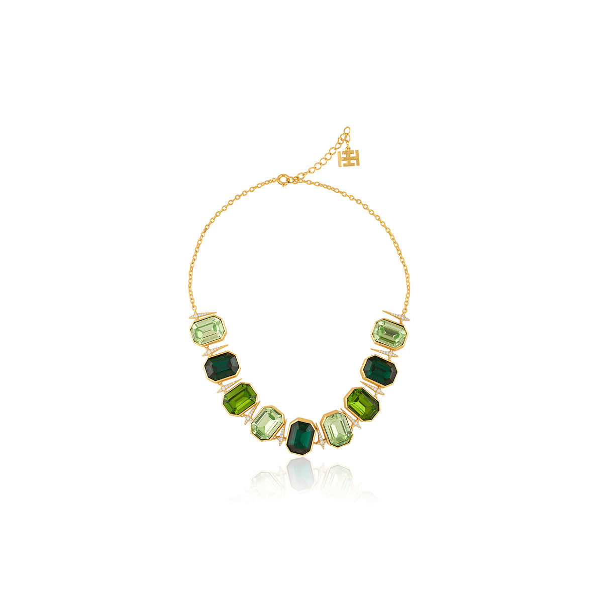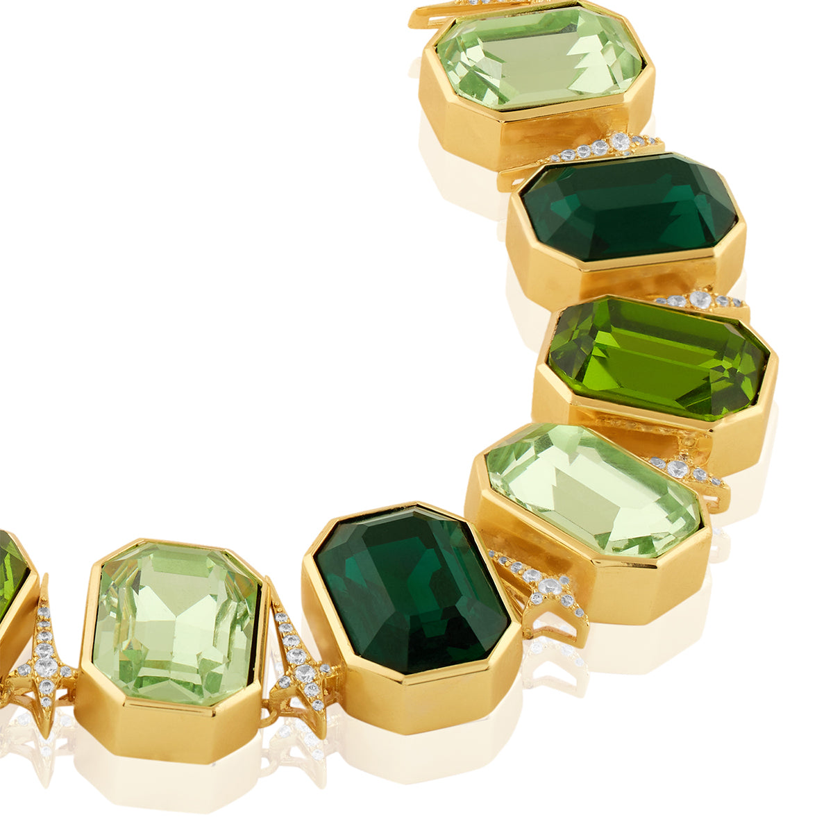 Turn every head this season with our multicolour statement necklace, crafted in brass with 18k gold plating. Adorned with crystal zirconias, it draws from cosmic constellations and ancient symbolism. Perfect for weddings, cocktails, and festive soirées.
