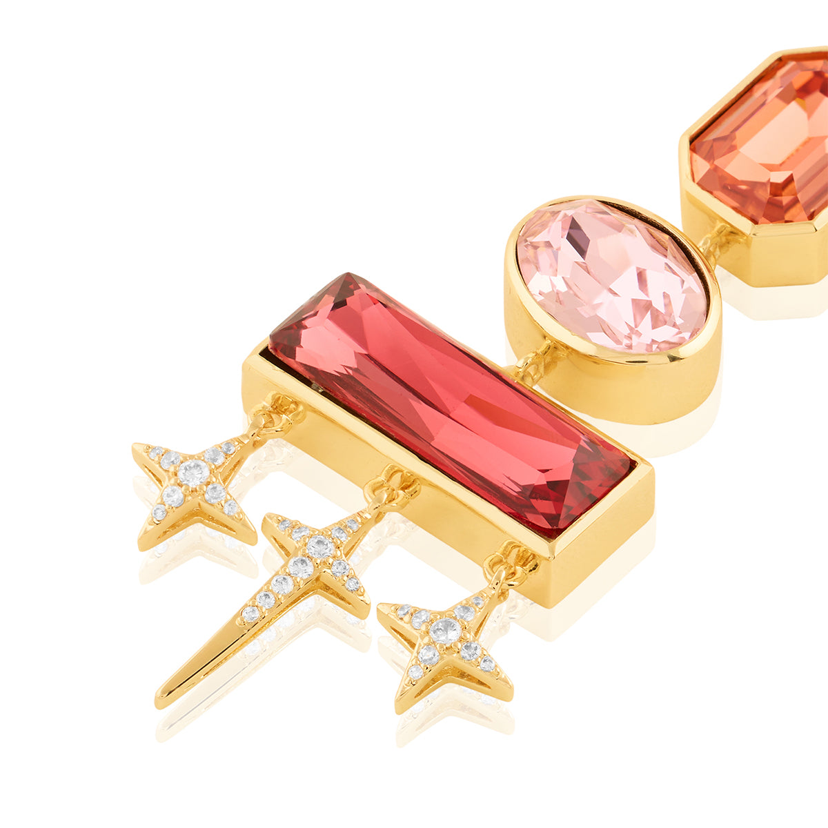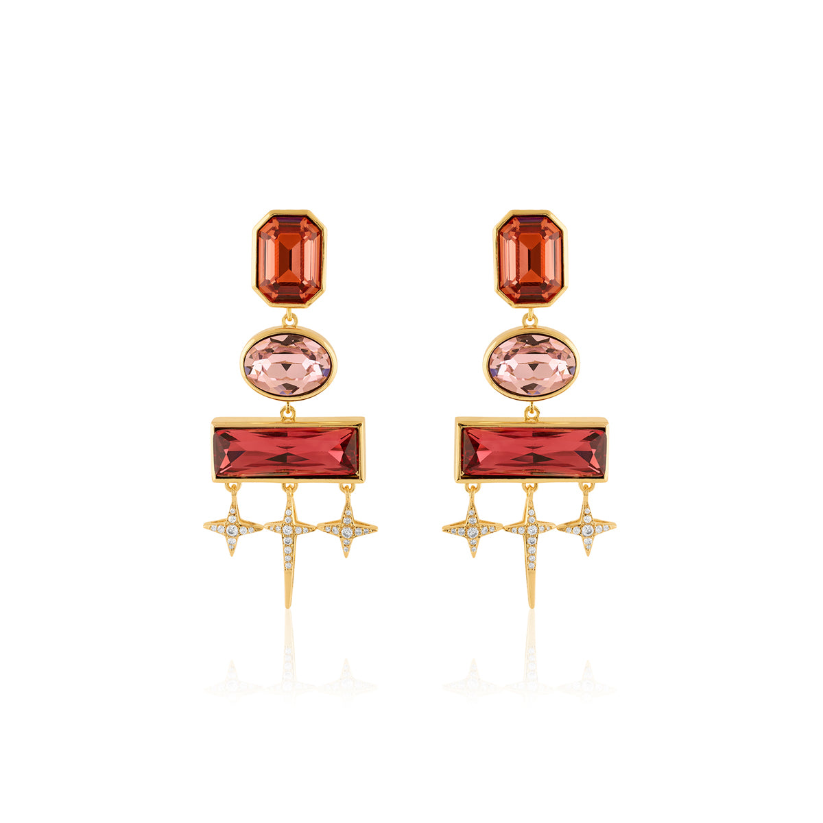 lluminate every occasion with these statement earrings, crafted in brass with 18k gold plating. Featuring crystal zirconia stones, they echo cosmic constellations and ancient symbolism. Perfect for weddings, cocktails, and festive nights.