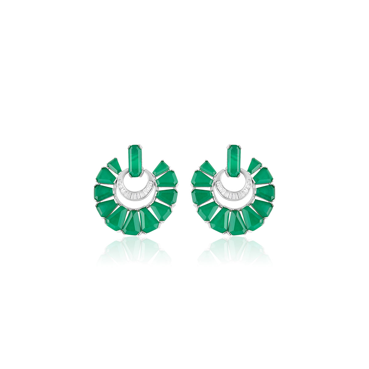 Turn heads with Isharya’s white and green earrings, featuring special-cut crystal zirconia and Botox emeralds. Crafted in brass with rhodium plating, these hypoallergenic statement earrings exude timeless glamour. Perfect for weddings, festive soirées, and cocktail nights. Shop unmatched luxury now.