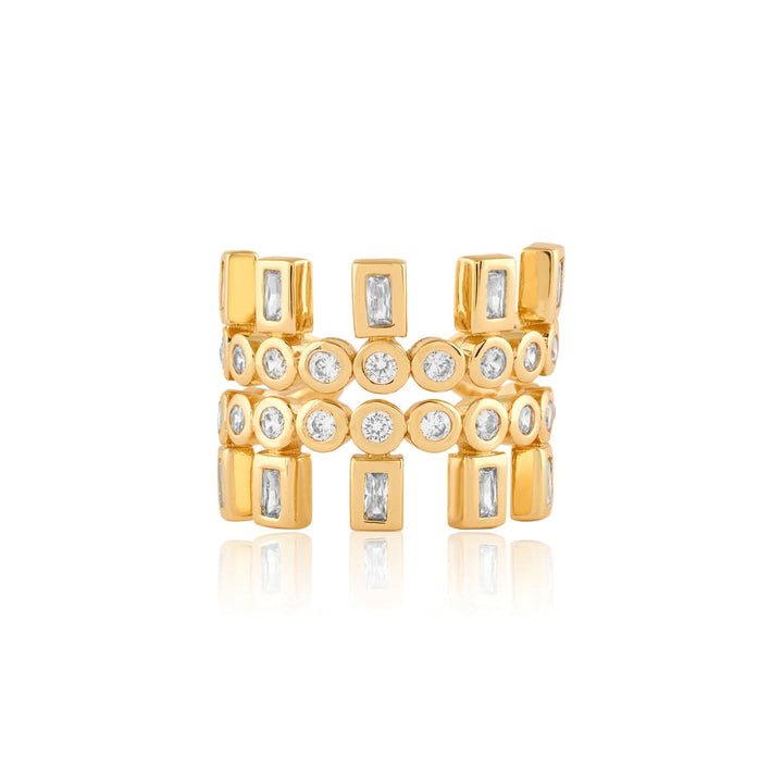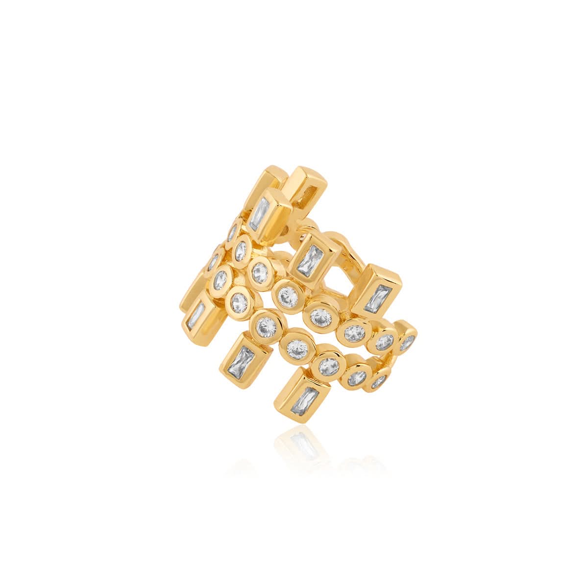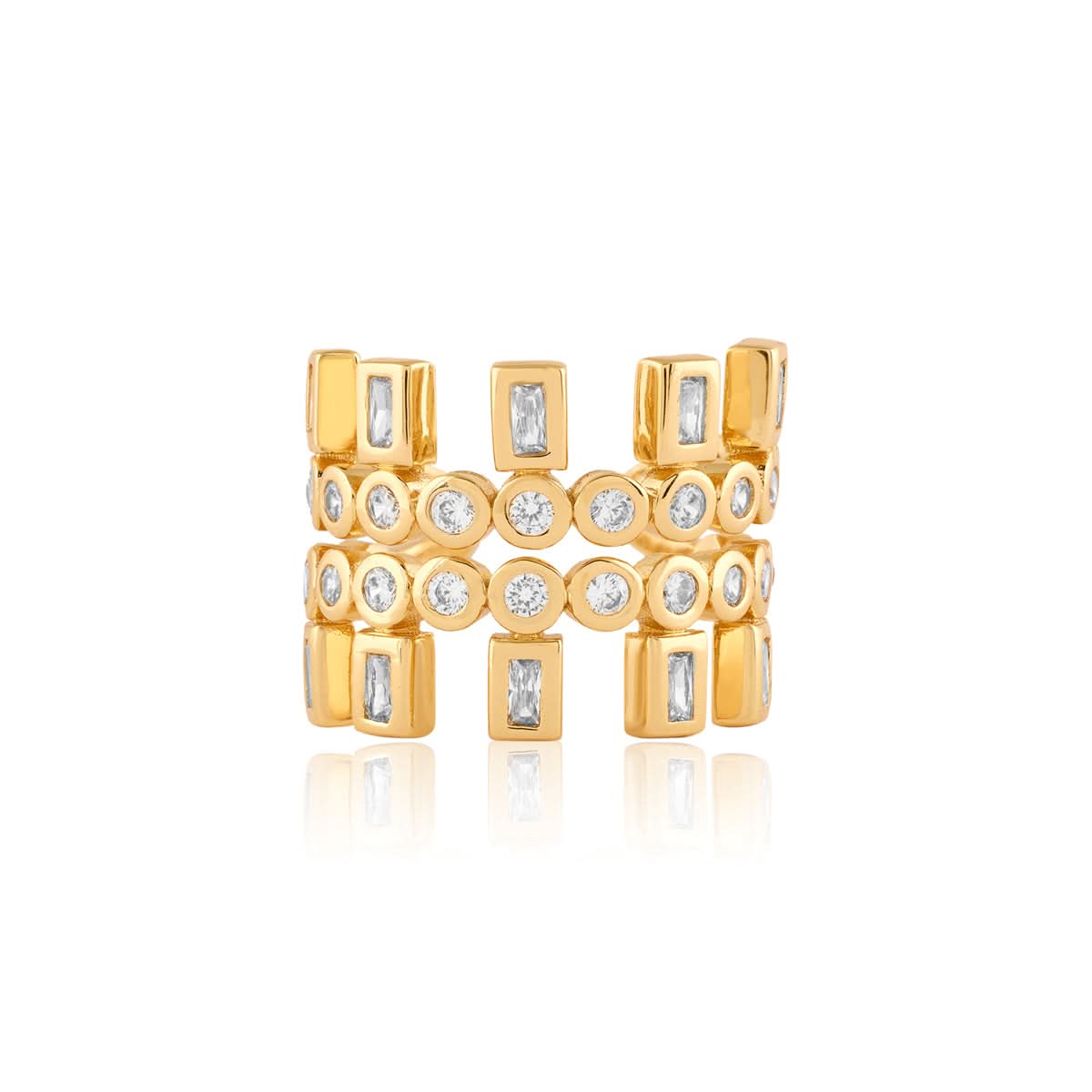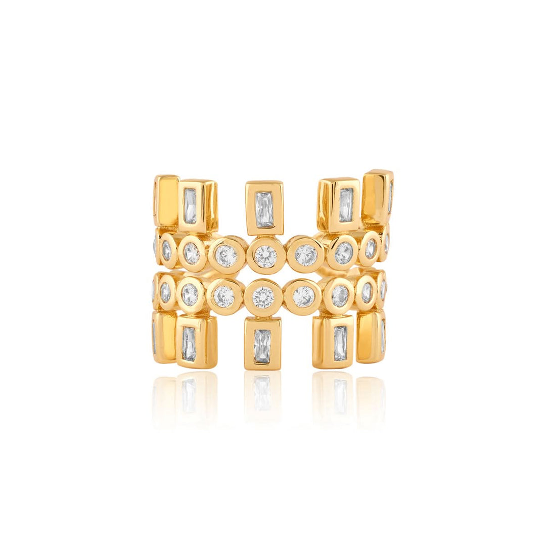 Inspired by the playful spirit of summer, this ring is crafted in brass and plated with 18k gold. Featuring brilliant crystal zirconia stones, this lightweight ring offers the perfect pop of shimmer to your summer ring stack.
