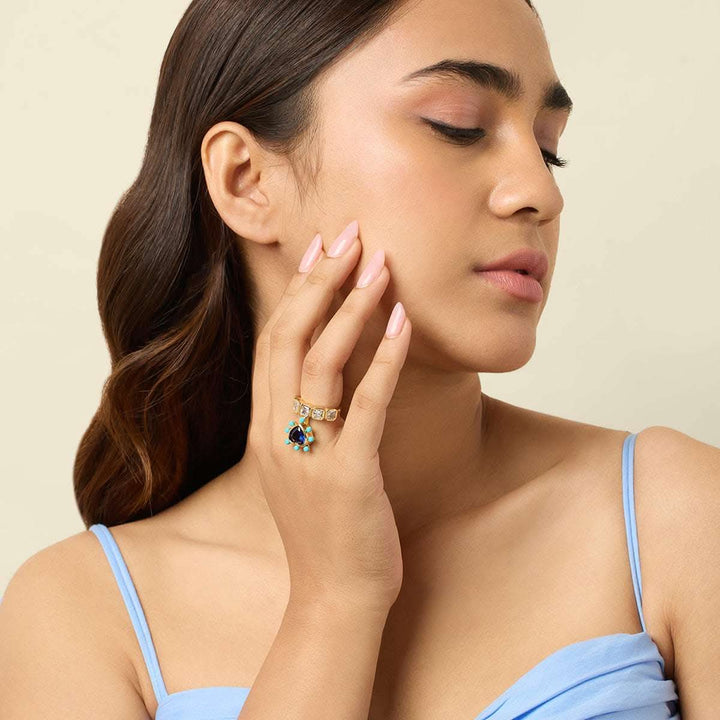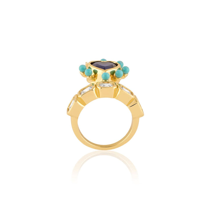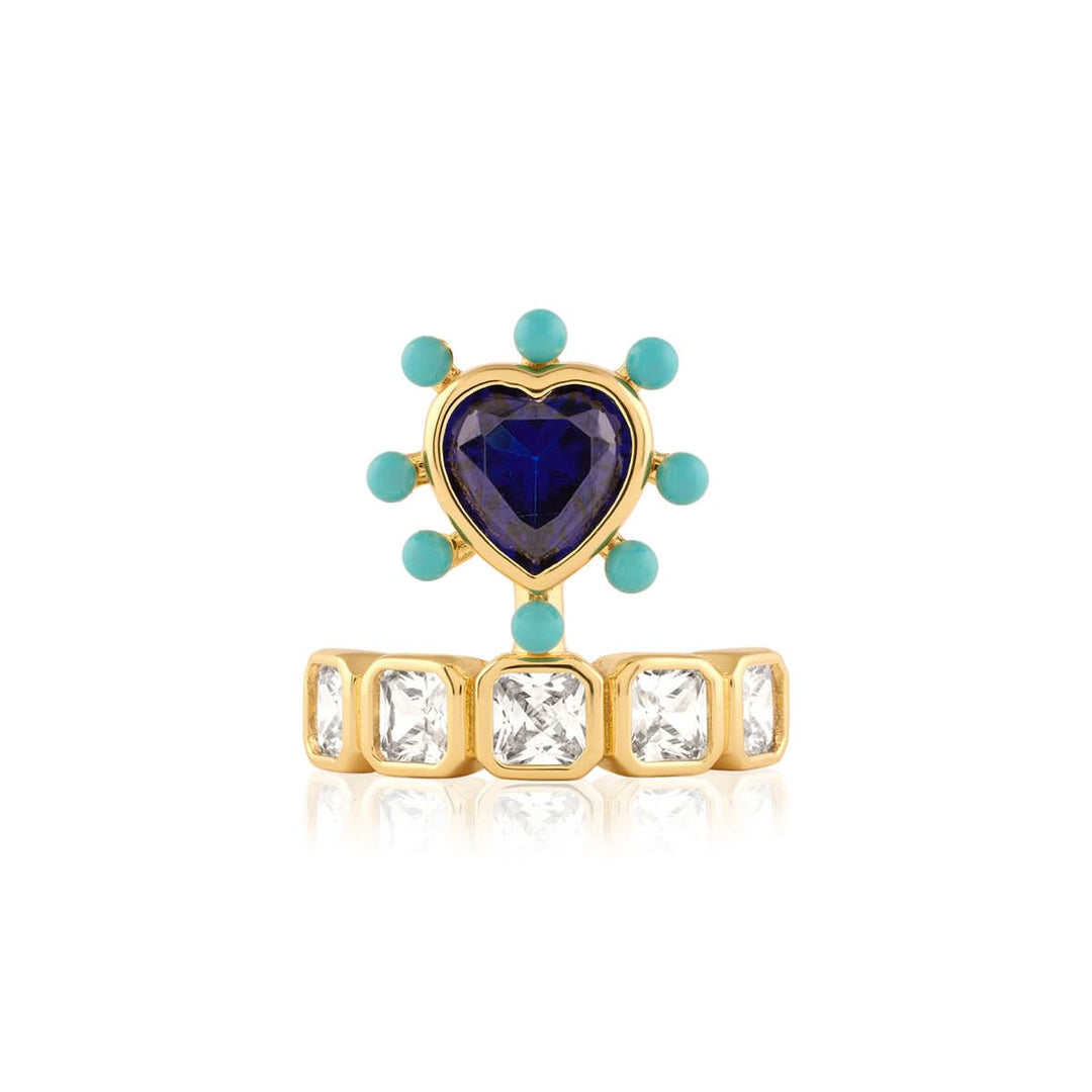 Inspired by the playful spirit of summer, this ring is crafted in brass and plated with 18k gold. Featuring brilliant crystal zirconia stones, this lightweight ring offers the perfect pop of colour to your summer ring stack.